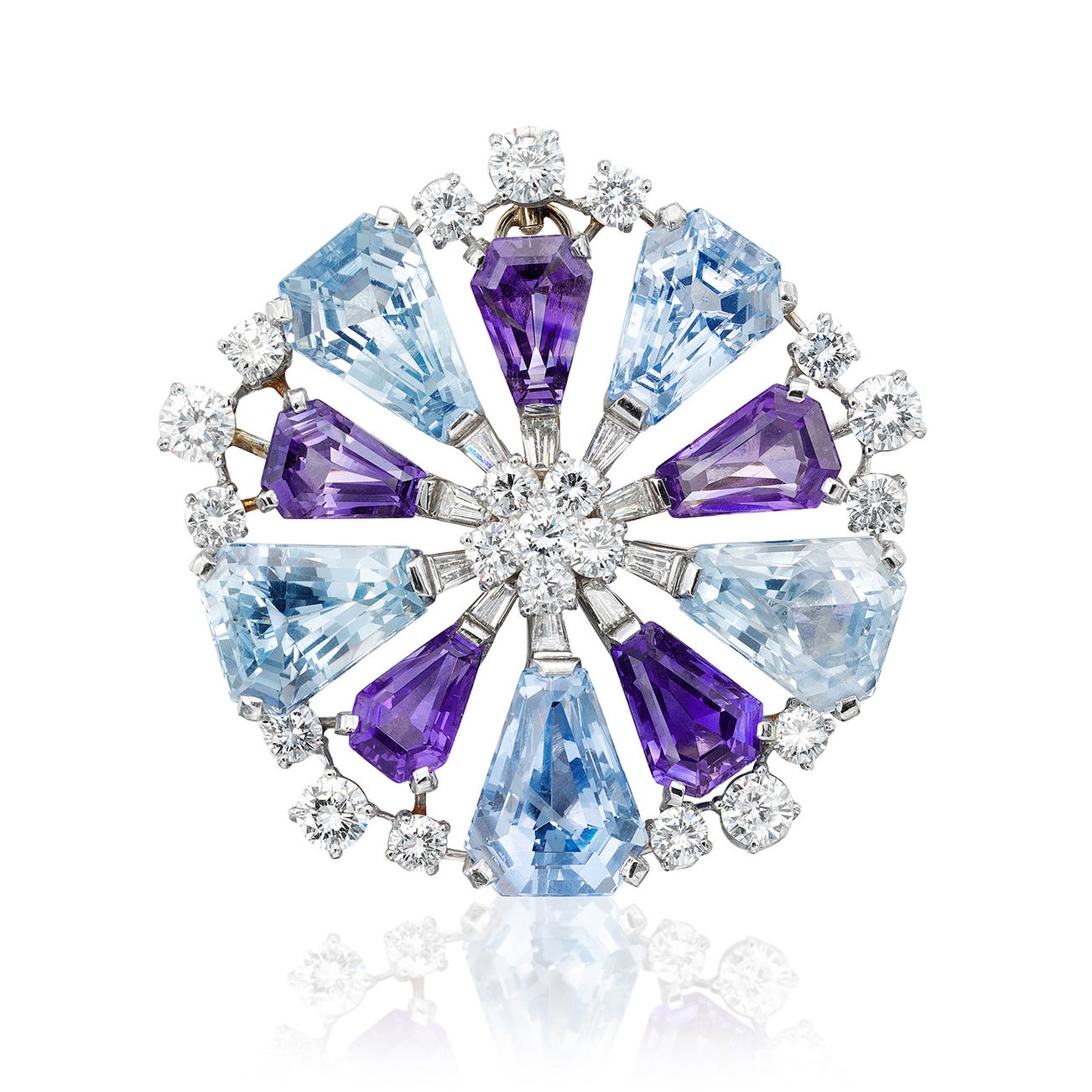 A Multi-Colored Sapphire, Diamond, and Platinum Brooch