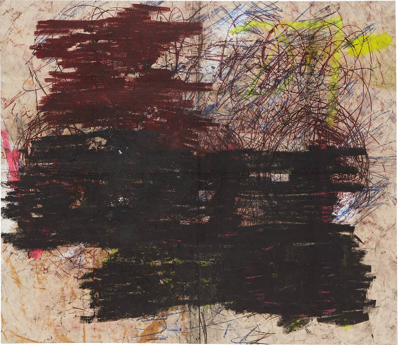 Untitled is exemplary of Oscar Murillo’s exploratory and grounded work heading into the 2010’s. Channeling the likes of Cy Twombly and Jean-Michel Basquait, Colombian-born, London raised artist, Murillo produces beautifully expressive paintings using oil sticks, spray paint and dust from his studio. The raw energy and vigor of the young artist’s mark making, clearly visible in this piece, is what quickly established his as a practice destined for critical renown.