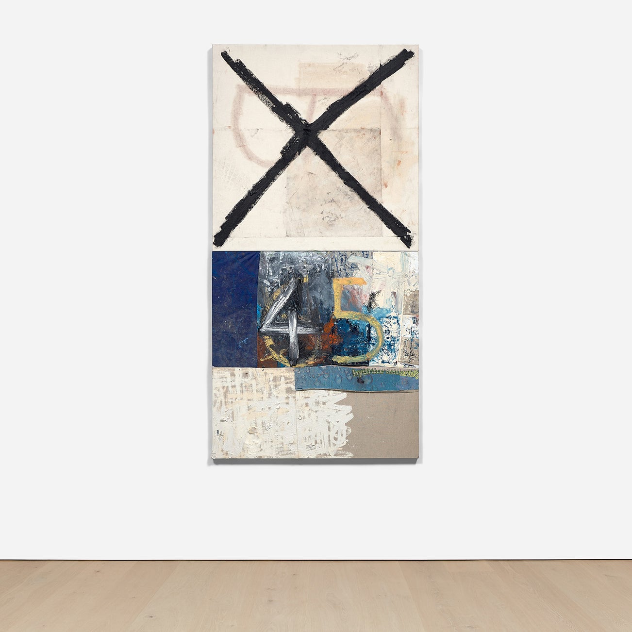 oil, oilstick, found paper collage and string on canvas, in 2 parts