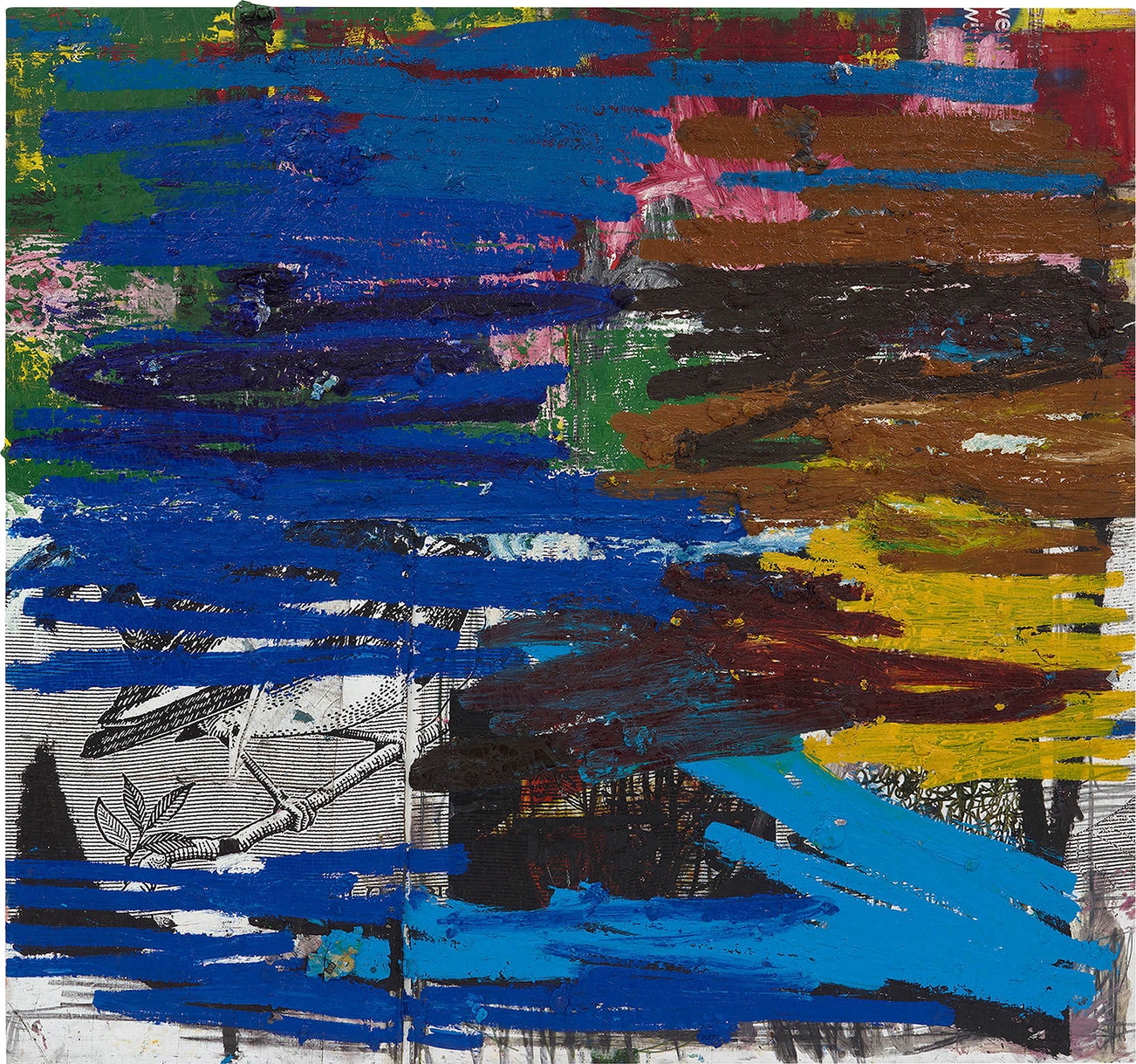 oil, oilstick, paper collage and canvas collage on canvas