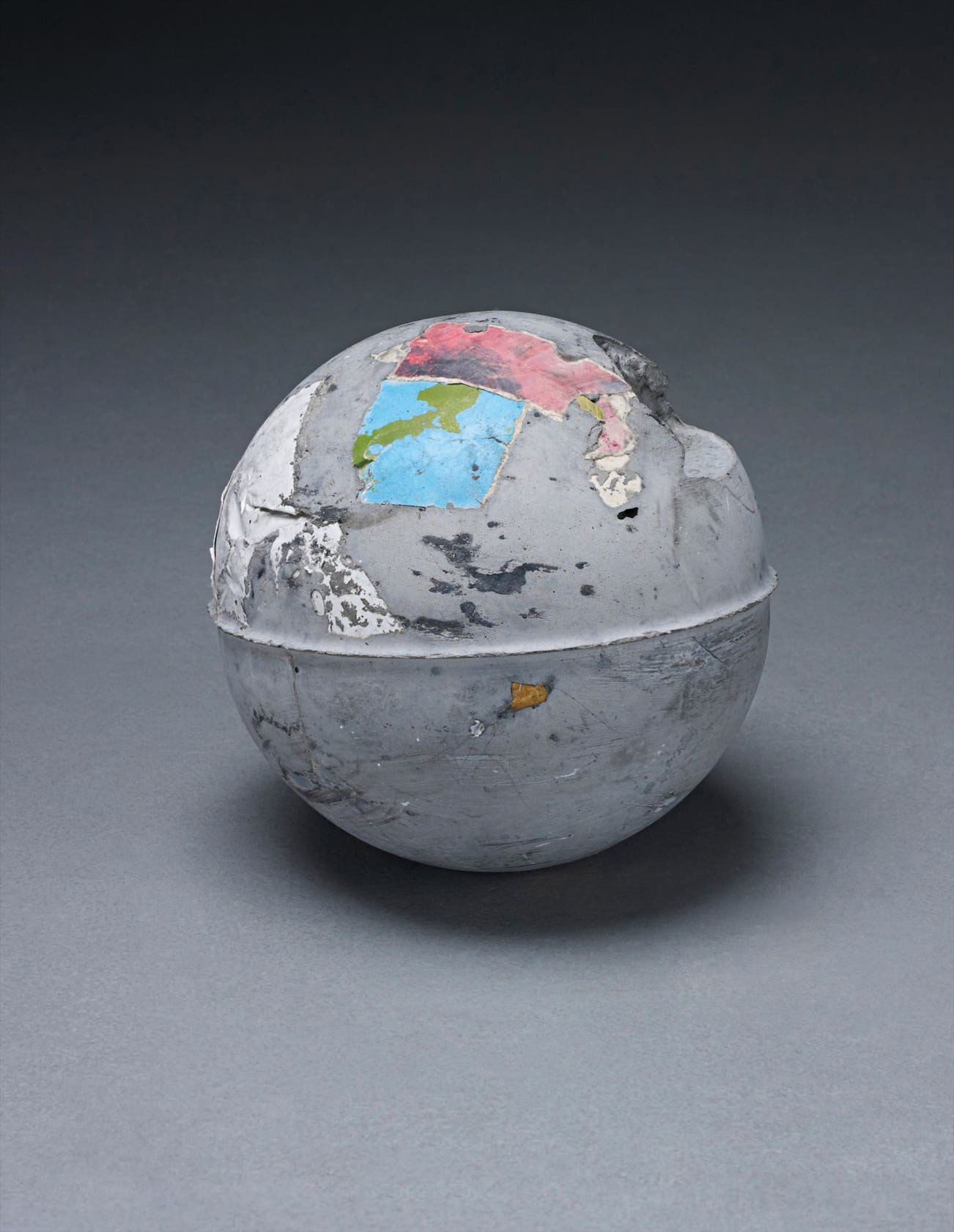 These sculptures that were created as individual works have been transposed and reconsidered as a collective grouping of objects, such as in social anomalies from a candy factory, 2013, in which the concrete balls reference lollypops (chalupas) made in a Colombian candy factory. This particular factory and its workers appear in a video titled welcome to the members club, in which the production process and social connections of the workers are revealed. Murillo’s ability to capture a sense of movement, identity and culture in his works form the basis of comparisons to the likes of Jean Michel Basquiat. The present lot, an early example of his sculptural work, is vital to the understanding of his artistic practice as a whole. The crusted seam appears like the equator on a globe, and the colored surfaces float like vibrant continents colliding with one another above the nuances occurring within the concrete surface. The work is exemplary to the extent that it illustrates Murillo’s conceptual development, foreshadowing the hypergestural artistic practice that has followed.