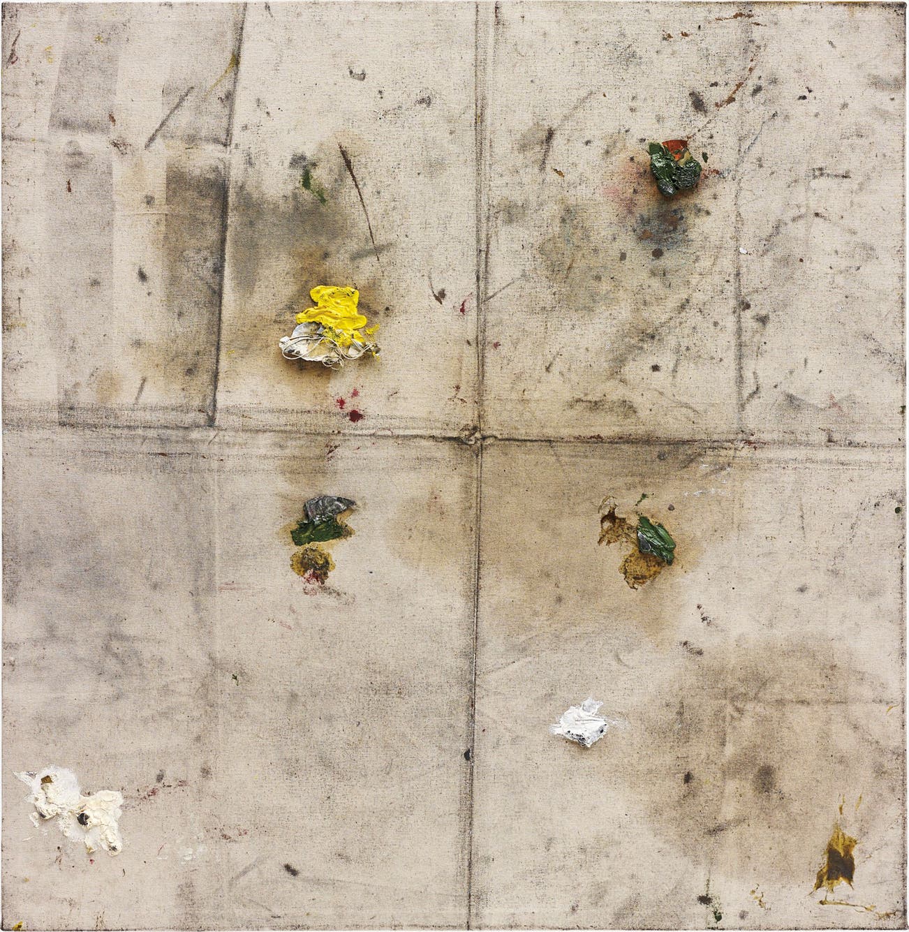 oil, acrylic, charcoal, dirt on canvas