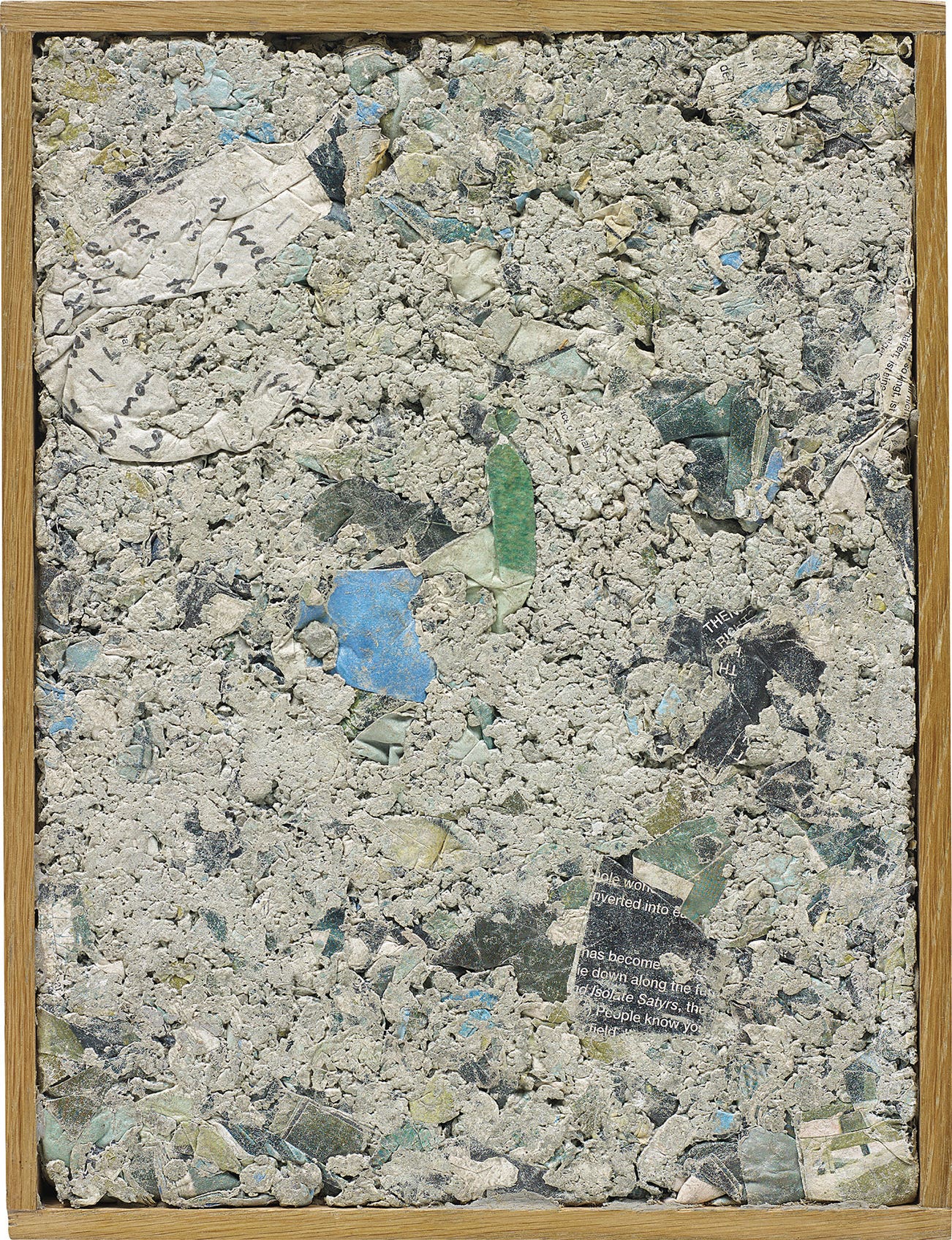 concrete, paper and newspaper, in artist's frame