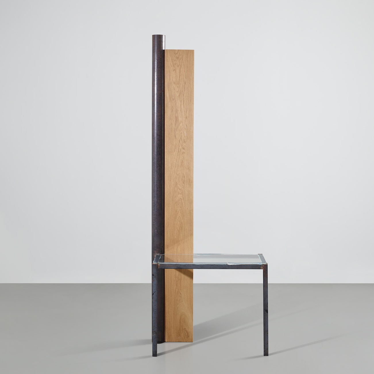 steel bars, steel pipe, oak, Plexiglas and silicone