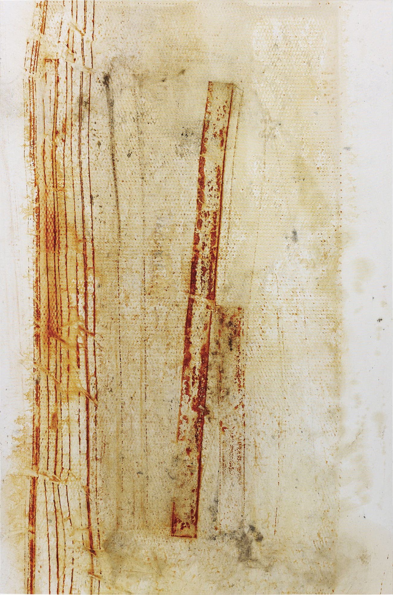 rust, engine oil, charcoal, cement on canvas