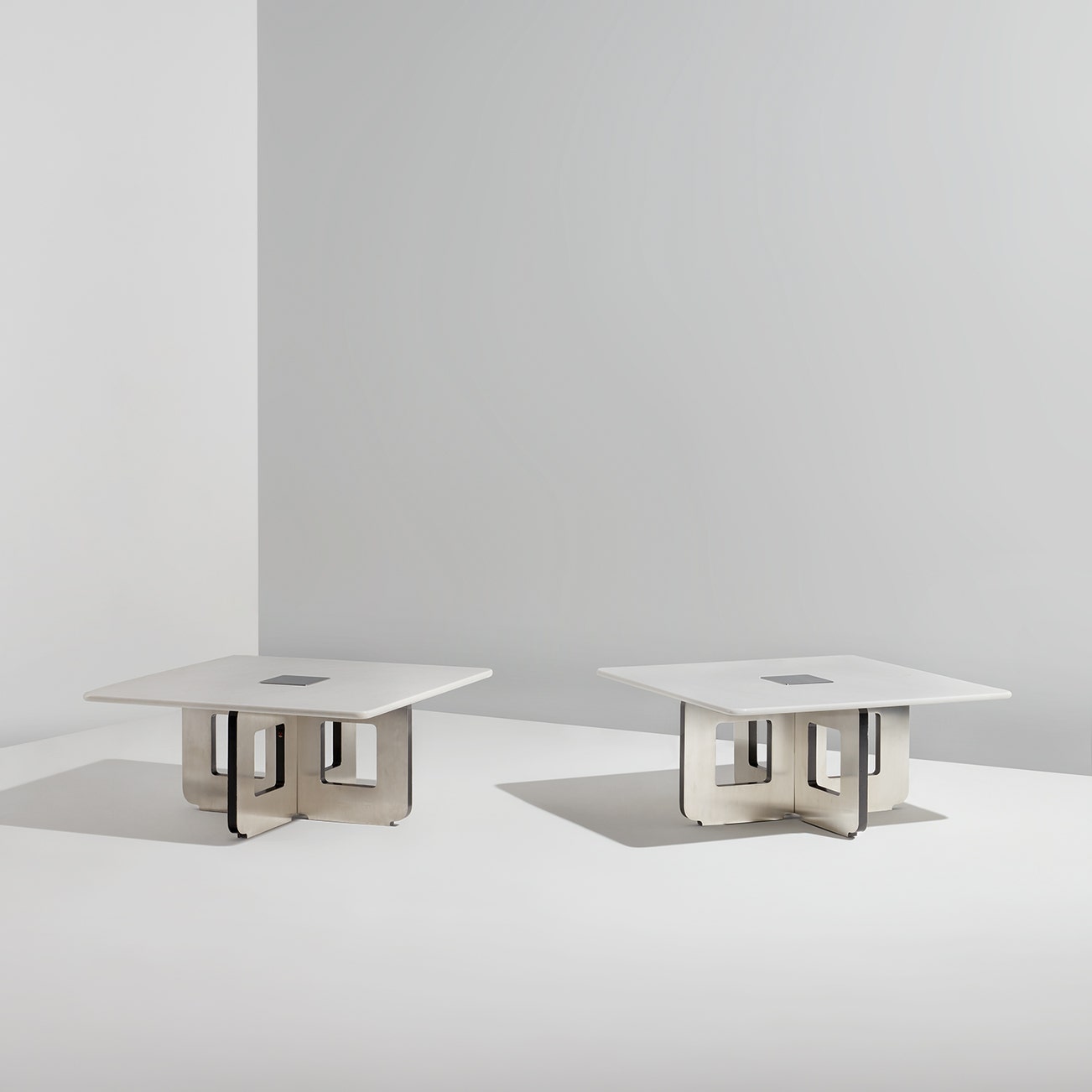 Manufactured by Tecno, Milan, Italy. Interior of one leg with manufacturer's label printed Tecno/Milano.