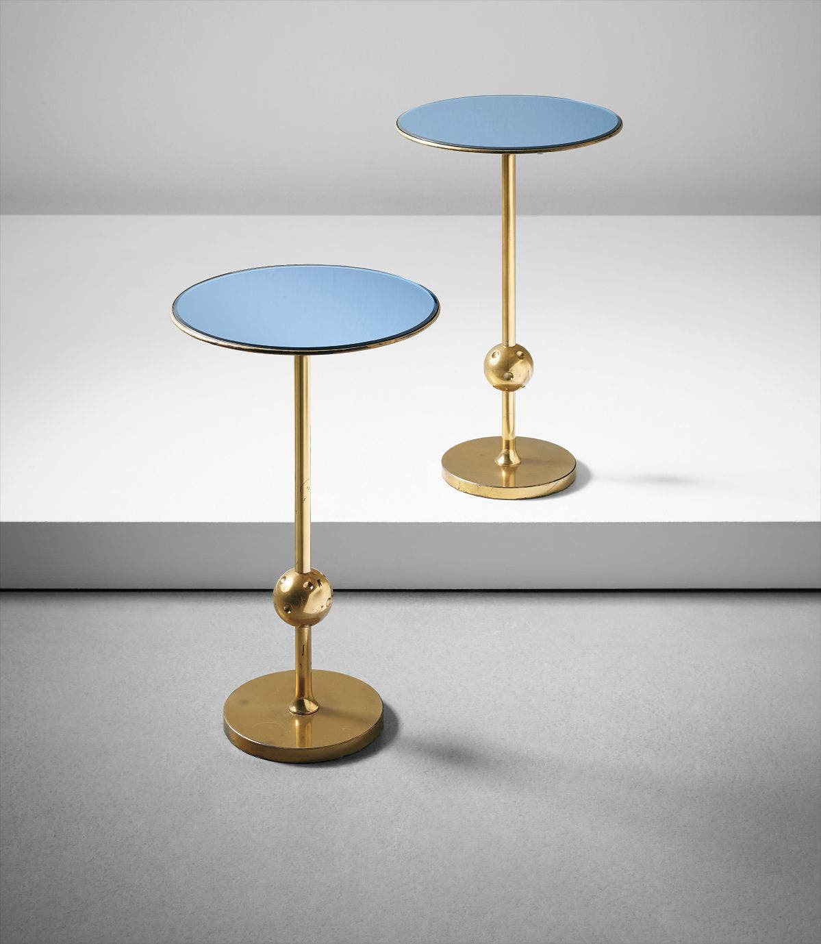 Brass, colored mirrored glass.