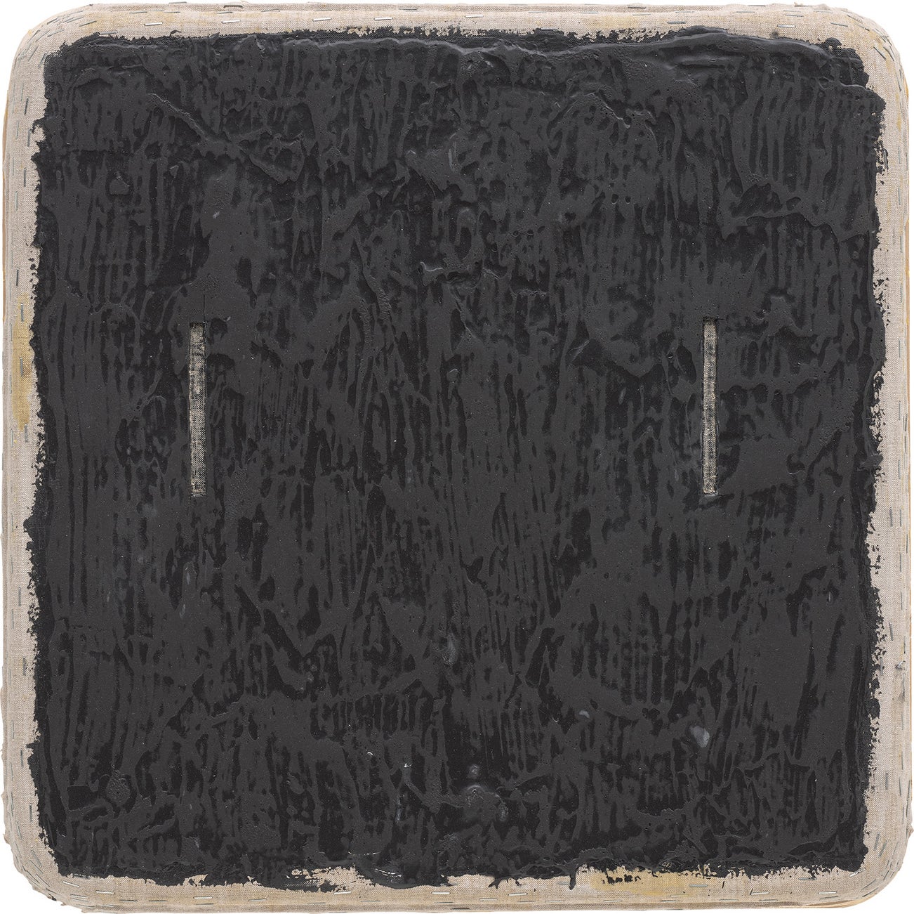 signed, titled and dated 'BLACK WITH TWO CHISELED LINES OTIS JONES 2017' on the reverse