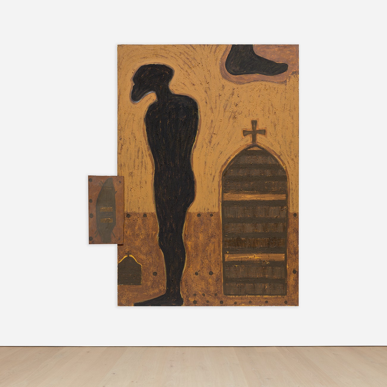 acrylic, dry pigment, sand and wood on canvas