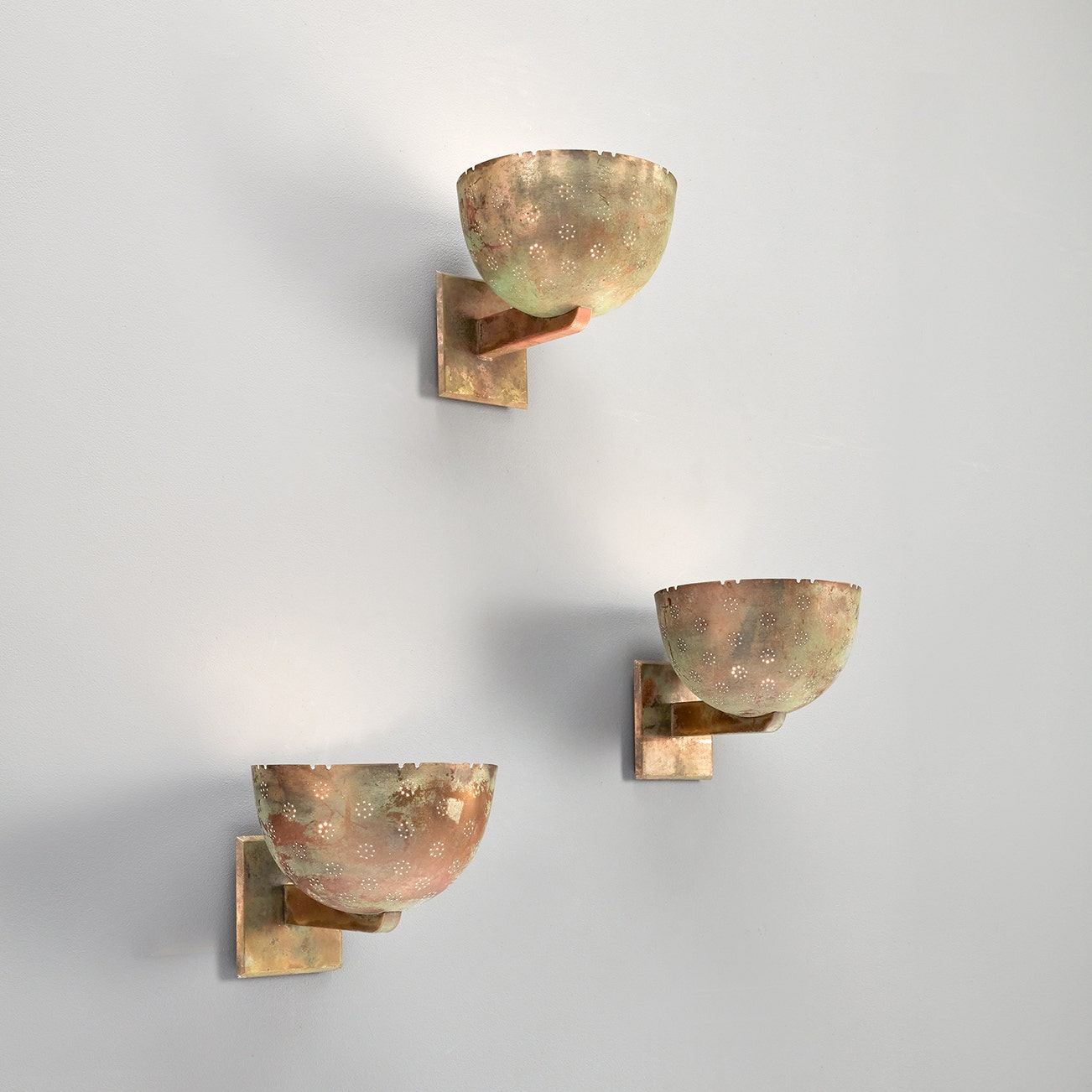 Manufactured by Idman, Helsinki, Finland. Reverse of one wall light ink stamped FINLAND HOUSE/LIGHTING CORP./NEW YORK, N.Y. Another stamped twice FINLAND HOUSE/LIGHTING CORP./NEW YORK, N.Y. One wall light with retailer's paper hang tag.