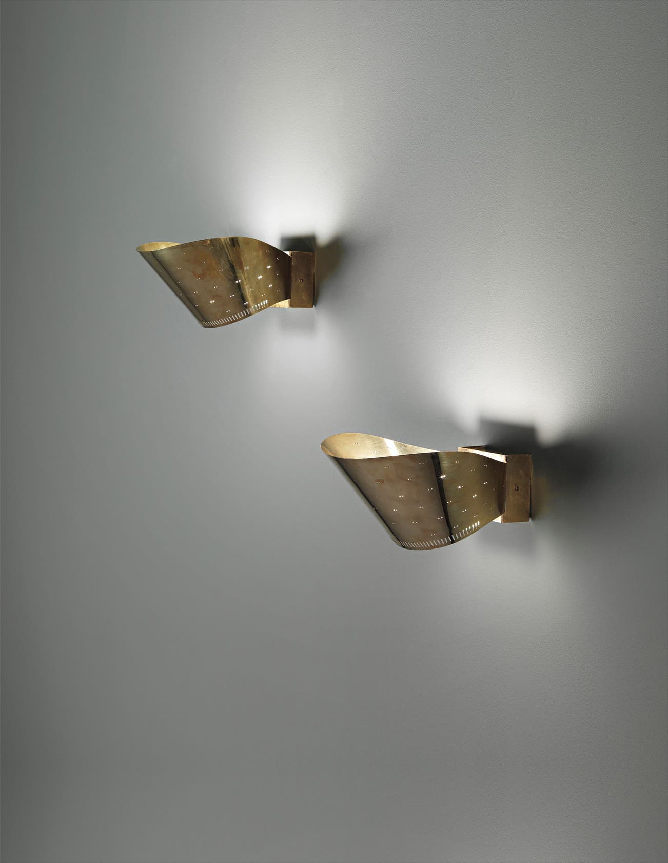 Perforated brass, brass, frosted glass.