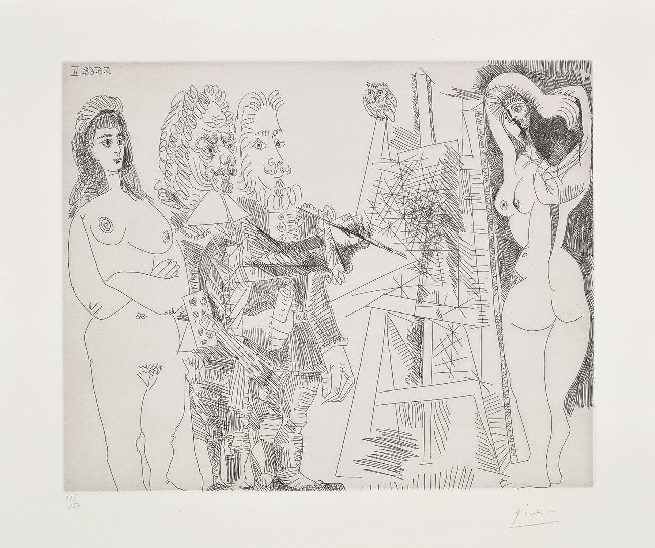 L'Atelier, avec un hibou et un envoyé officiel (The Studio, With an Owl and an Official Envoy), plate 65 from the 347 Series