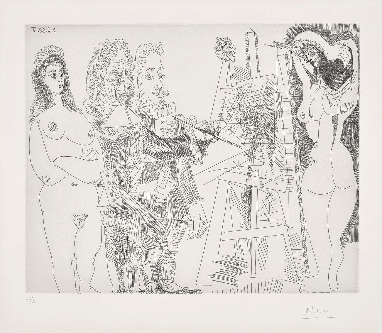 L'Atelier, avec un hibou et un envoyé officiel (The Studio, With an Owl and an Official Envoy), plate 65 from Series 347