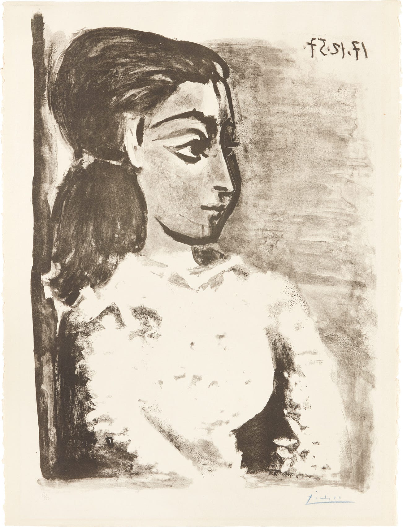 Buste de femme au corsage blanc (Jacqueline de profil) (Bust of a Woman with White Bodice, Jacqueline in Profile)