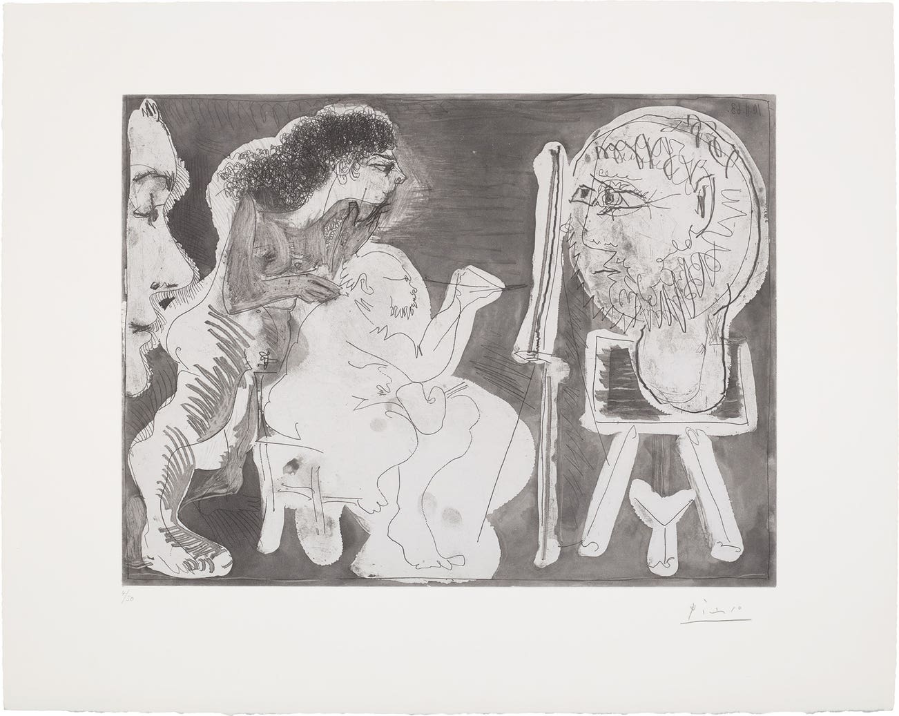 Peintre avec une sculpture sur une sellette, une femme nue et un spectateur (Painter with a Sculpture on a Stand, a Nude Woman and a Spectator)