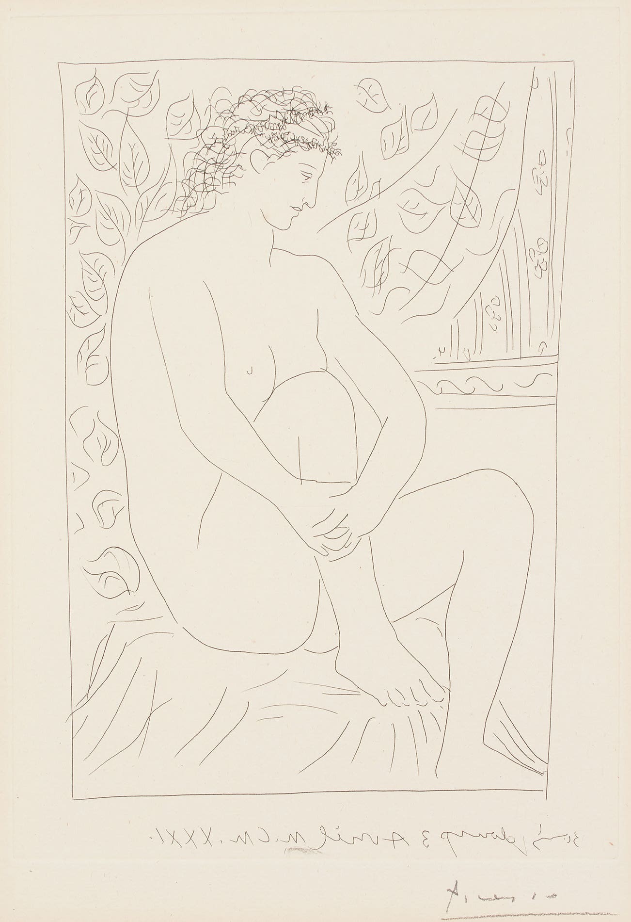 Femme nue assise devant une rideau (Naked Woman Sitting in Front of a Curtain), plate 4 from La Suite Vollard