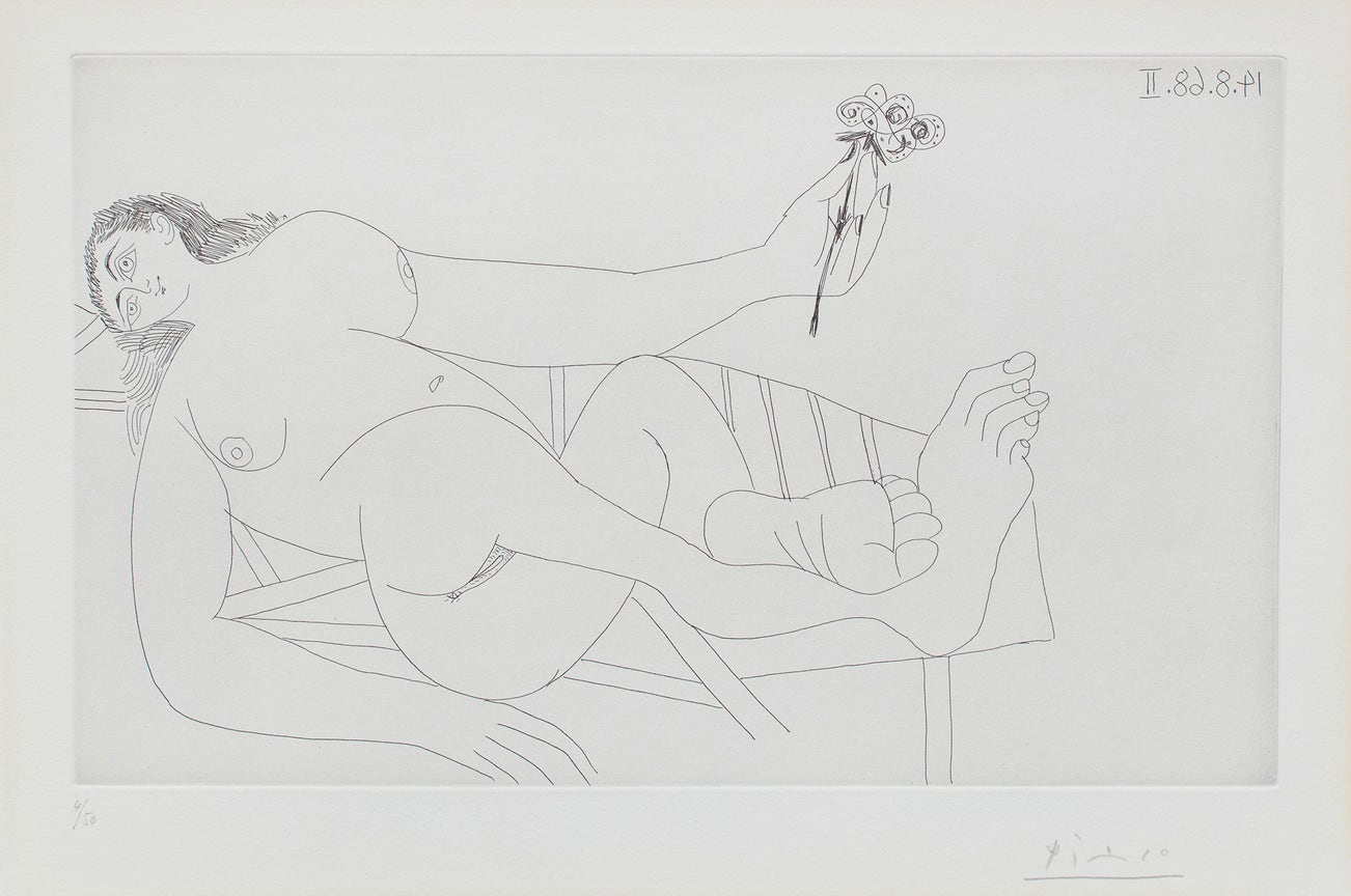 Femme à la fleur sur un transat (Woman with Flower on a Deckchair), pl. 278 from 347 Series (B. 1758, Ba. 1775)