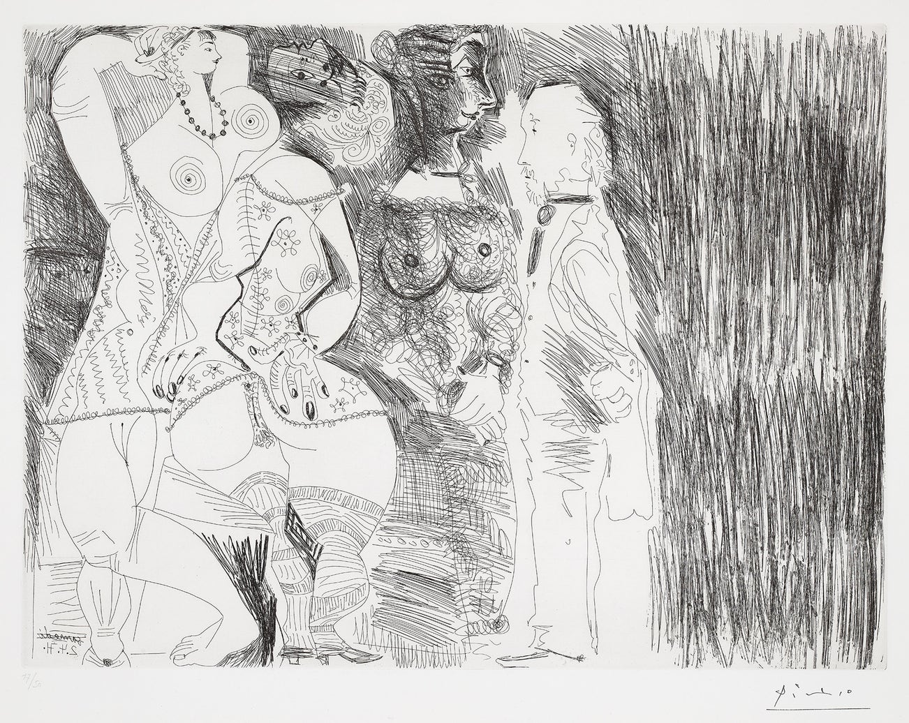 Degas imaginant, scène de seduction entre deux filles, avec matrone hypocrite (Degas Imagining, Scene of Seduction Between Two Girls, with a Hypocritical Matron), plate 107 from Séries 156 (Bl. 1962, Ba. 1971)