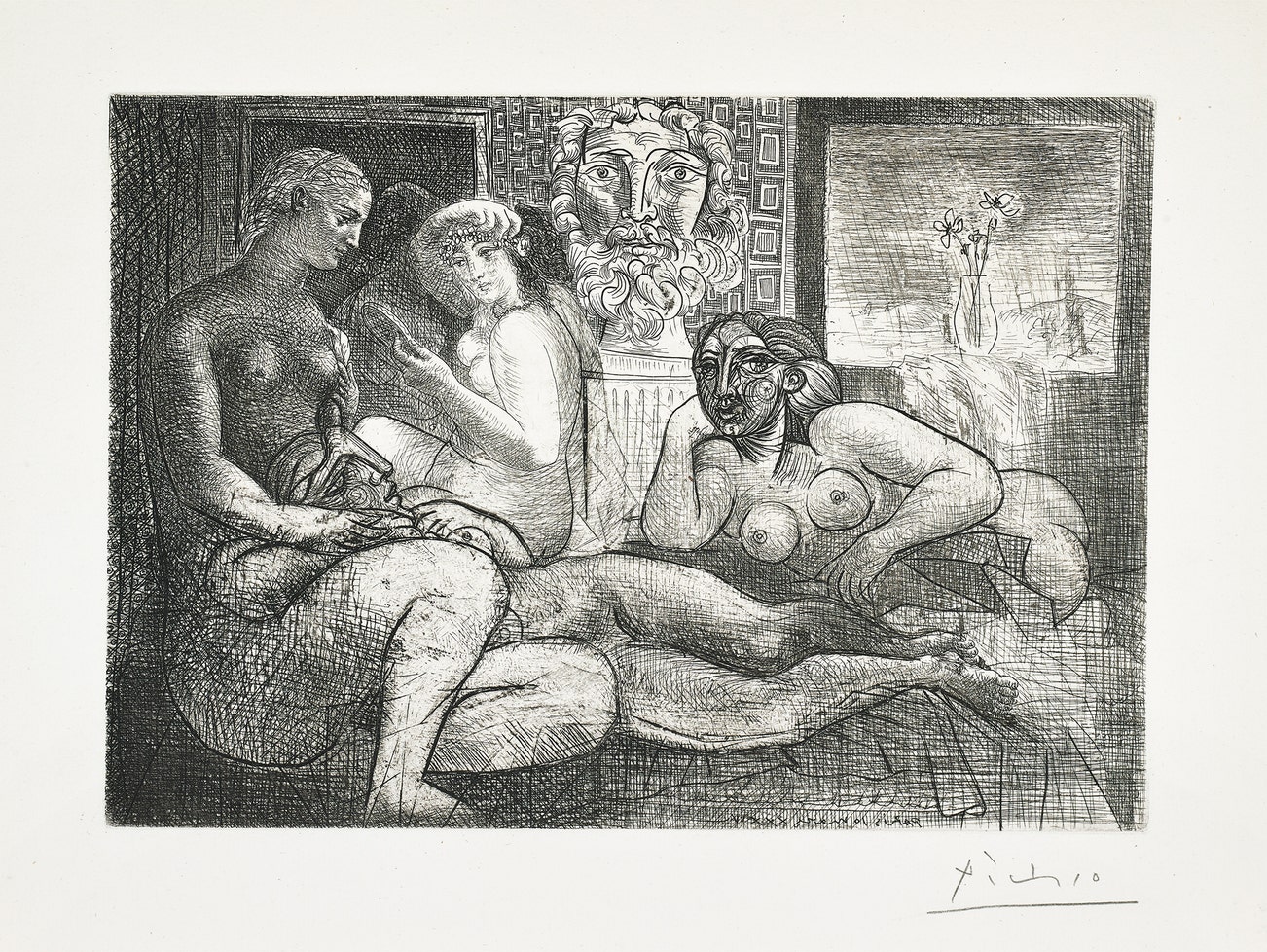 Quatre femmes nues et tête sculptée (Four Nude Women and a Carved Head), plate 82 from La Suite Vollard (Bl. 219, Ba. 424)
