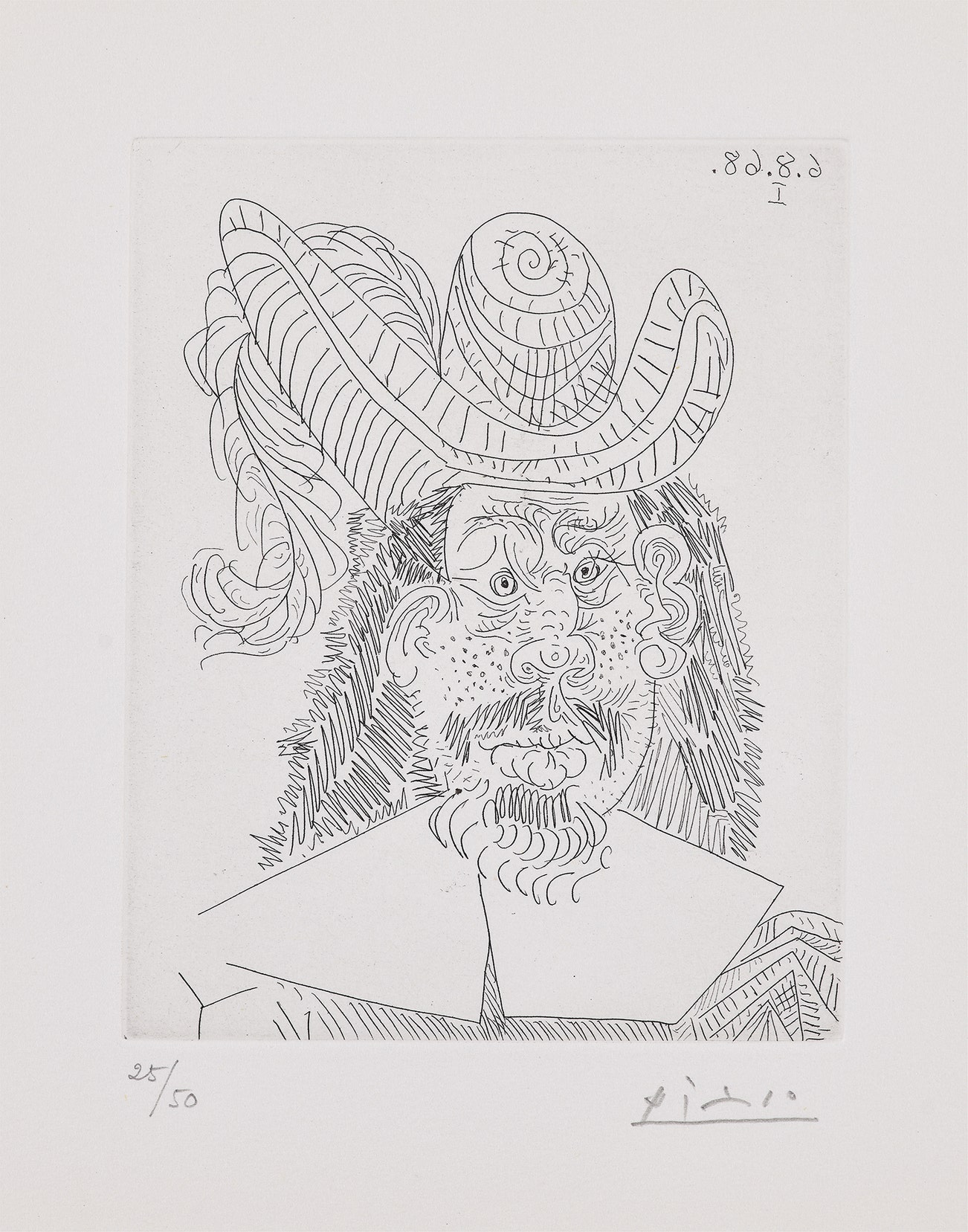 Portrait de 'Mousquetaire' vieillissant, au visage couperosé (Portrait of an Aging 'Musketeer' with a Blotchy Face), plate 252 from 347 Series (Bl. 1732, Ba. 1749)