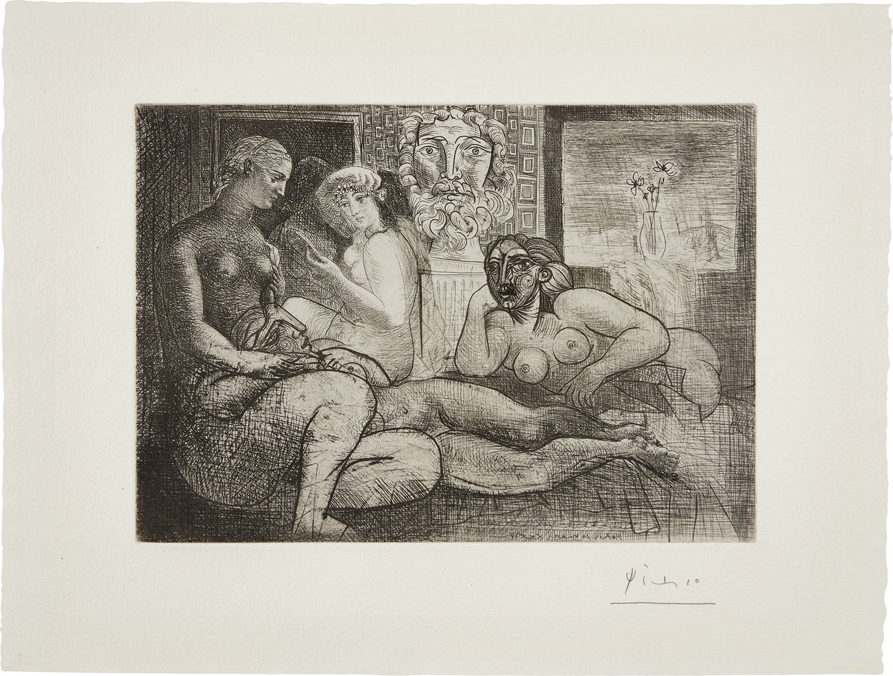 Quatre femmes nues et tête sculptée (Four Nude Women and a Carved Head), plate 82 from La Suite Vollard (Bl. 219, Ba. 424)