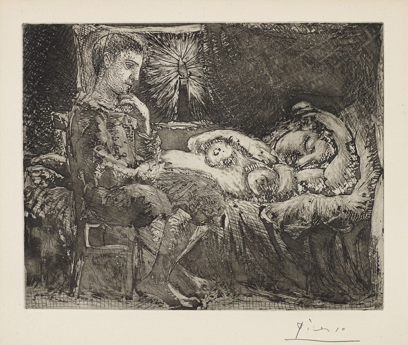 Garçon et dormeuse à la chandelle (Boy and Sleeping Woman by Candle Light), plate 26 from La suite Vollard