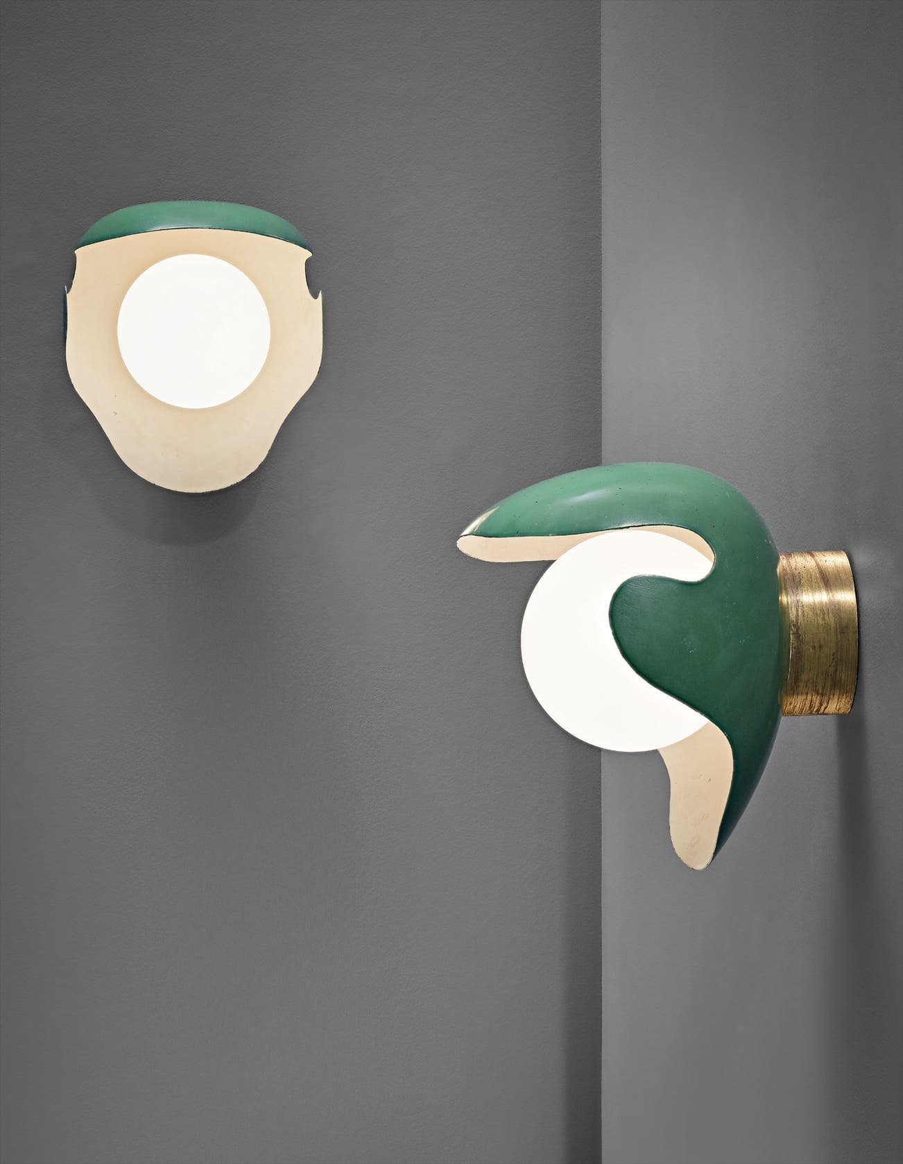 Painted brass, brass, opaque glass.