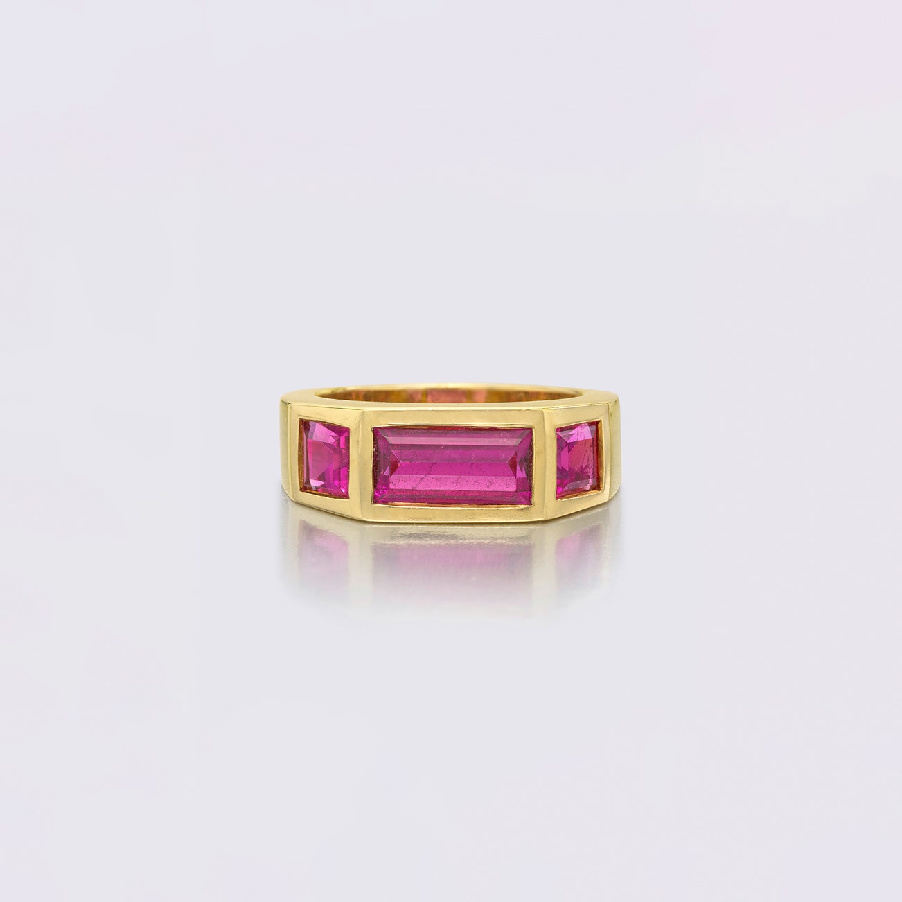Set with rectangular- and square-shaped pink tourmalines, mounted in 18K yellow gold, size 6 1/2, signed Tiffany & Co. Paloma Picasso.