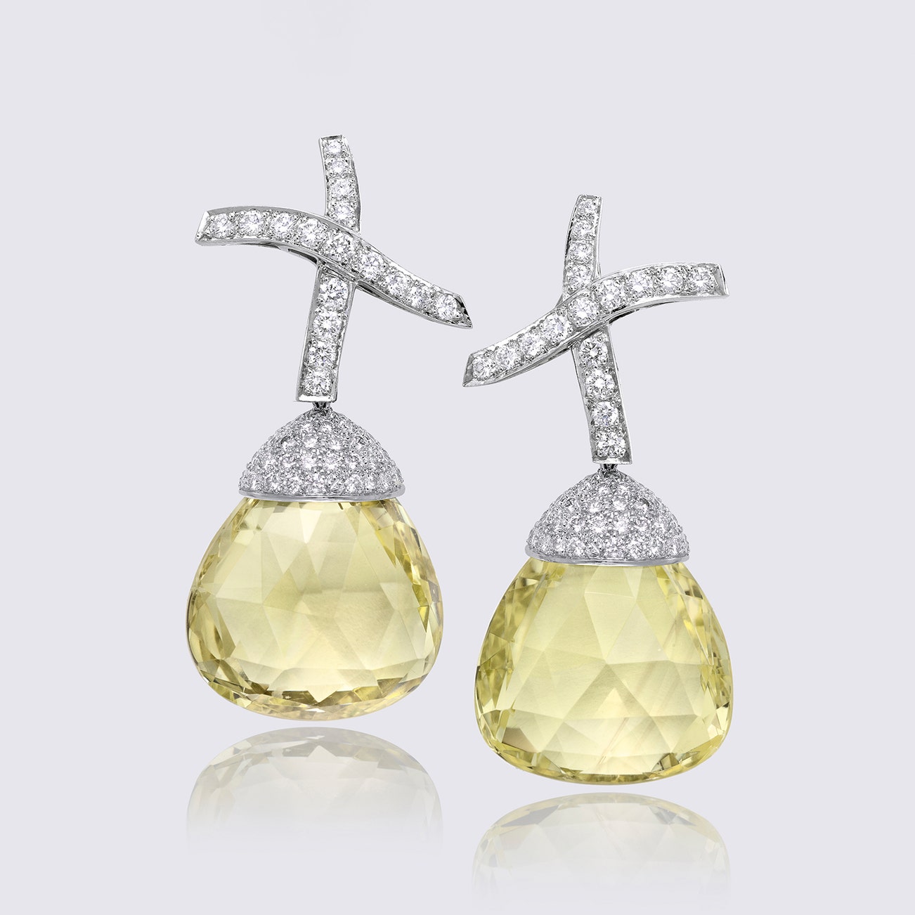 Pair of Diamond, Amethyst and Quartz Interchangeable Earrings, 'Graffiti X'