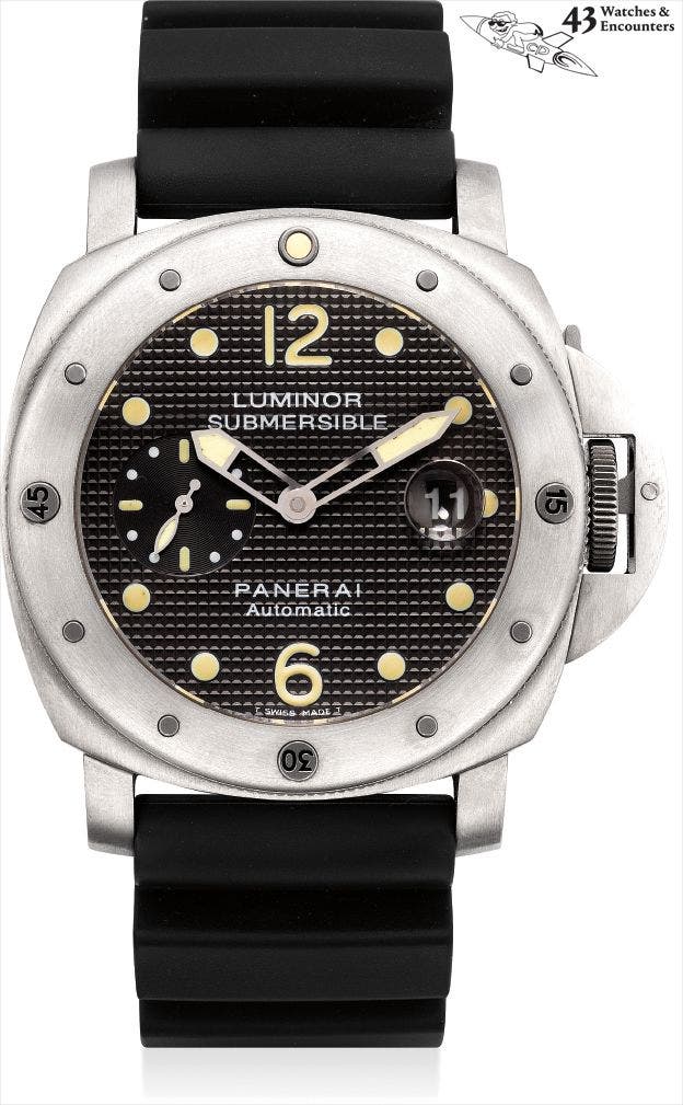 Laurent Picciotto Collection: A titanium limited edition cushion-shaped wristwatch with date, travel bag, framed photograph, framed sketches of the present watch, photograph of American patent and model of a battleship, manufactured in the first year of Richemont ownership