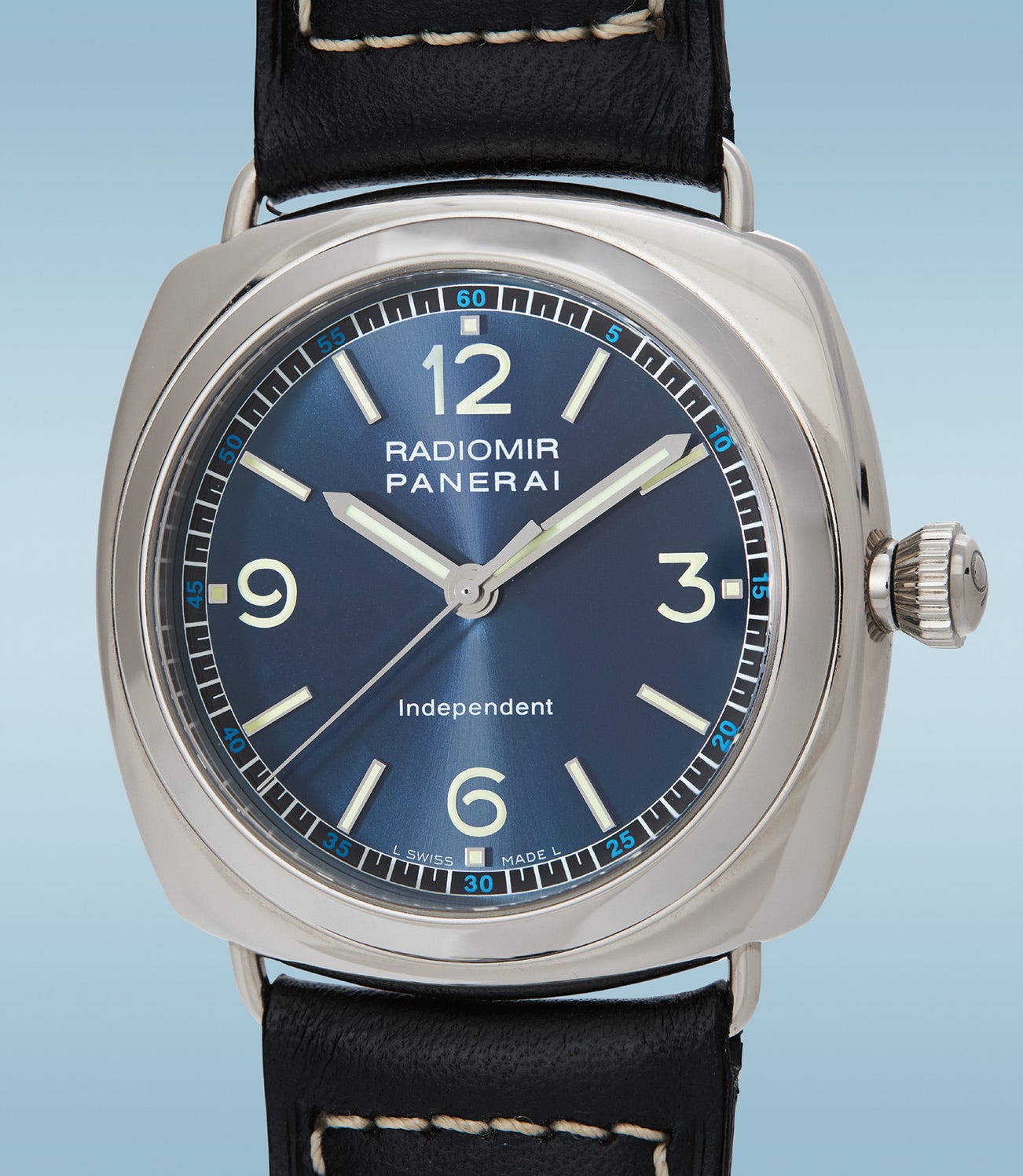 This Radiomir Independent is at once a step away from these origins and a natural successor to them. Cased in white gold, rather than utilitarian stainless steel or titanium, and shrunk down to a petite-for-Panerai 42mm diameter, the PAM80 nevertheless retains the cushion-form case and wire lugs of its forebearers. Though it bears the oversized luminous numerals associated with Panerai watches, it also displays a brilliant blue dial quite apart from the typical black or white dials associated with military legibility.