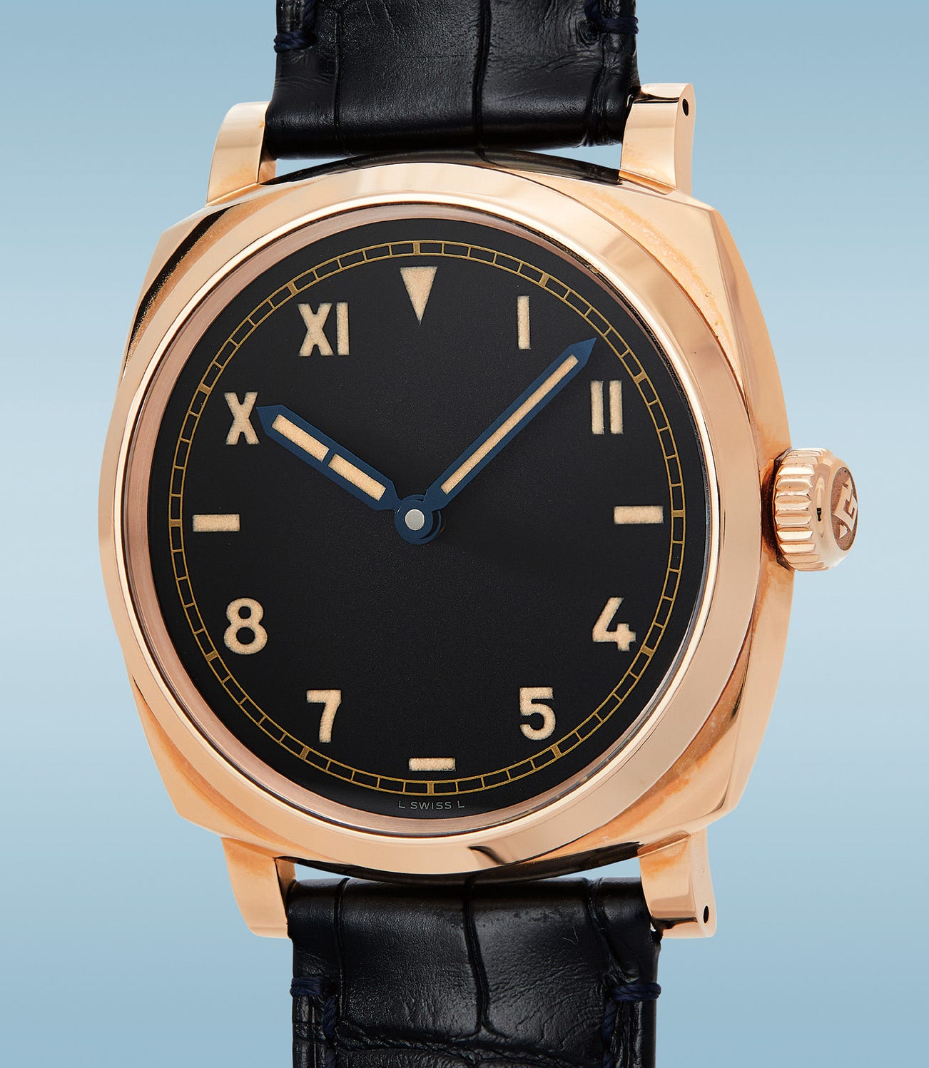 Released in 2017, the PAM740 is a modern iteration of the famed Radiomir with a “California” dial. The limited edition was produced in 300 pink gold examples, with the present timepiece numbered 158. The vintage-inspired dial features SuperLuminova numerals, and like other special editions, lacks the Panerai Radiomir signature and logo. Powered by the manual caliber P. 1000 with 3-day power reserve, the high-grade movement is fitted with a specially constructed bridge and two supports to secure the balance wheel for robust shock resistance.
