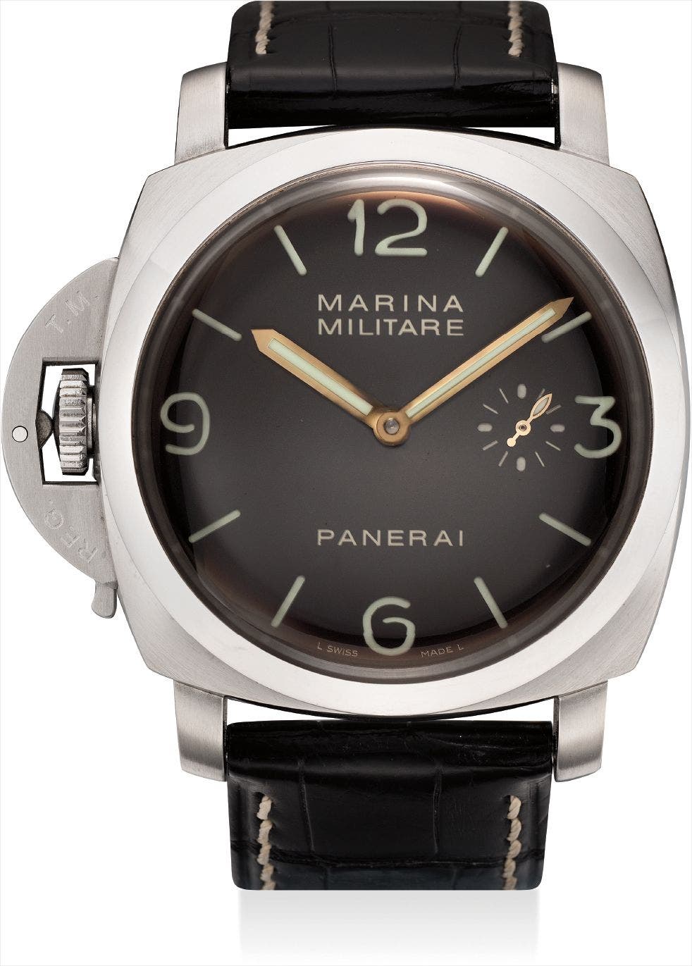 Known for its robust designs and large case sizes, Officine Panerai was established in 1860 by Giovanni Panerai in Florence, Italy. Around 1900, Giovanni's grandson Guido Panerai took over, and Panerai became the supplier to the Regia Marina — the Royal Italian Navy. After supplying the navy with high-precision instruments for a number of years, Officine Panerai created Radiomir, a radium-based powder that gives luminosity to the dials of sighting instruments and devices. By 1936, the Royal Italian Navy approached Panerai again with the request to design a watch resistant to extreme underwater conditions. The watch they created became known as the "Radiomir".