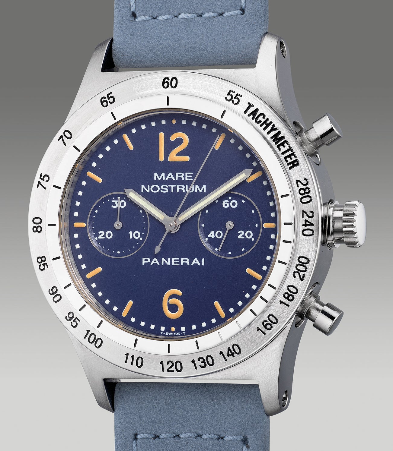 In 1993, Panerai during its pre-vendome days released their first ever re-edition of the Mare Nostrum. It is believed the production spanned from 1993 until 1997 with a total of 400 examples produced. Encased in a reduced 42mm diameter case, the design of the re-edition is rather entertaining as the friendly case size allowed for a comforting fit. Retaining essentially its iconic case design and dial layout for nostalgia, the Mare Nostrum re-edition case be categorized by two differentiating traits, pre and post Vendome. Pre-vendome examples featured a bezel without the “TACHYMETER” inscription while post-vendome examples featured “TACHYMETER” engraved on the bezel.