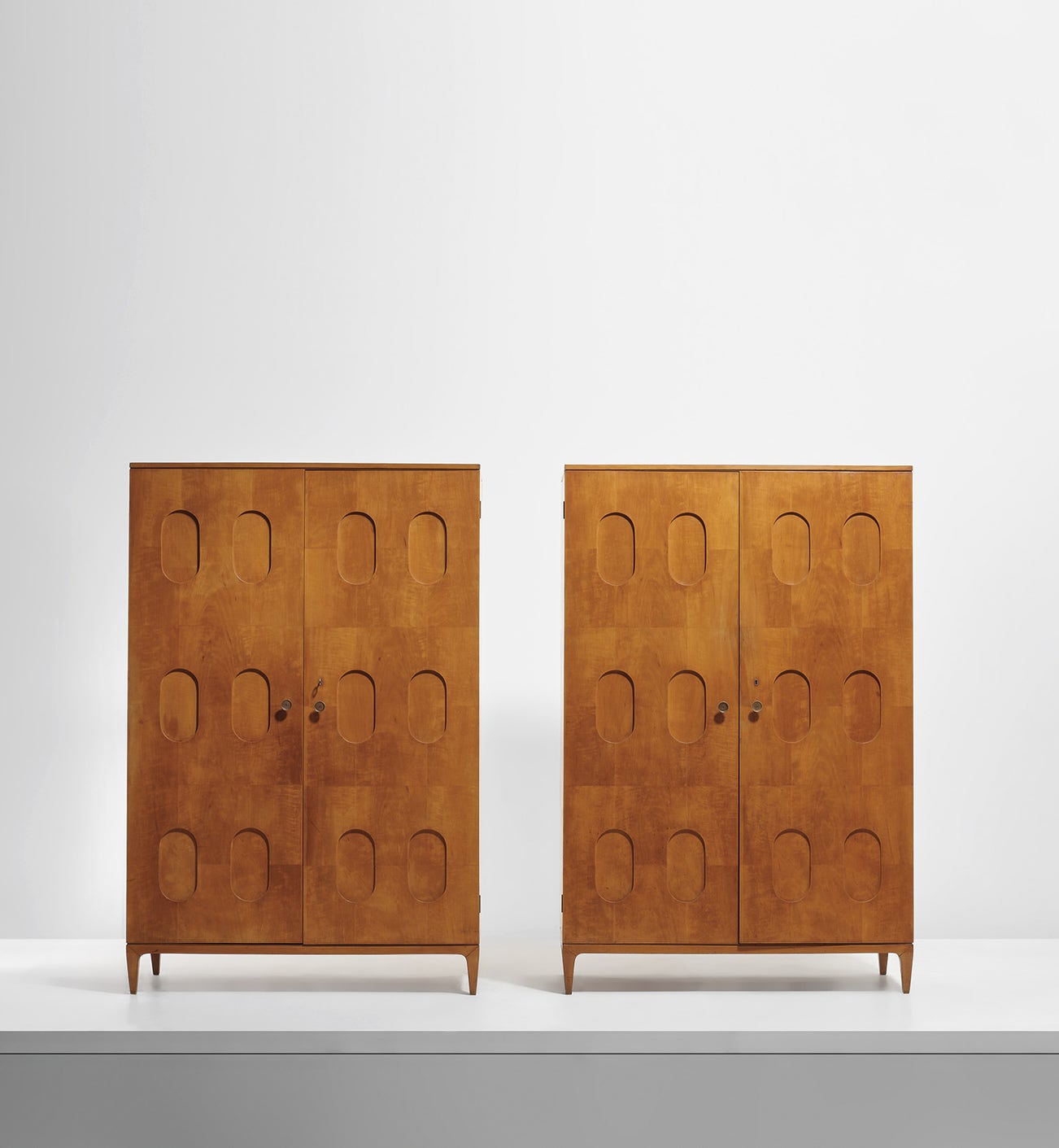 Possibly executed by Mosè Turri, Bovisio Masciago, Italy. Interior of each with metal label impressed S.I.L.LA/MILANO - TEL. 493-522/VIALE MISURATA 38/4. Together with a certificate of expertise from the Paolo Buffa Archive.