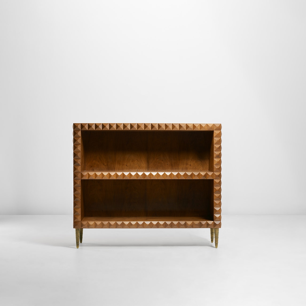 Walnut, walnut-veneered wood, brass.