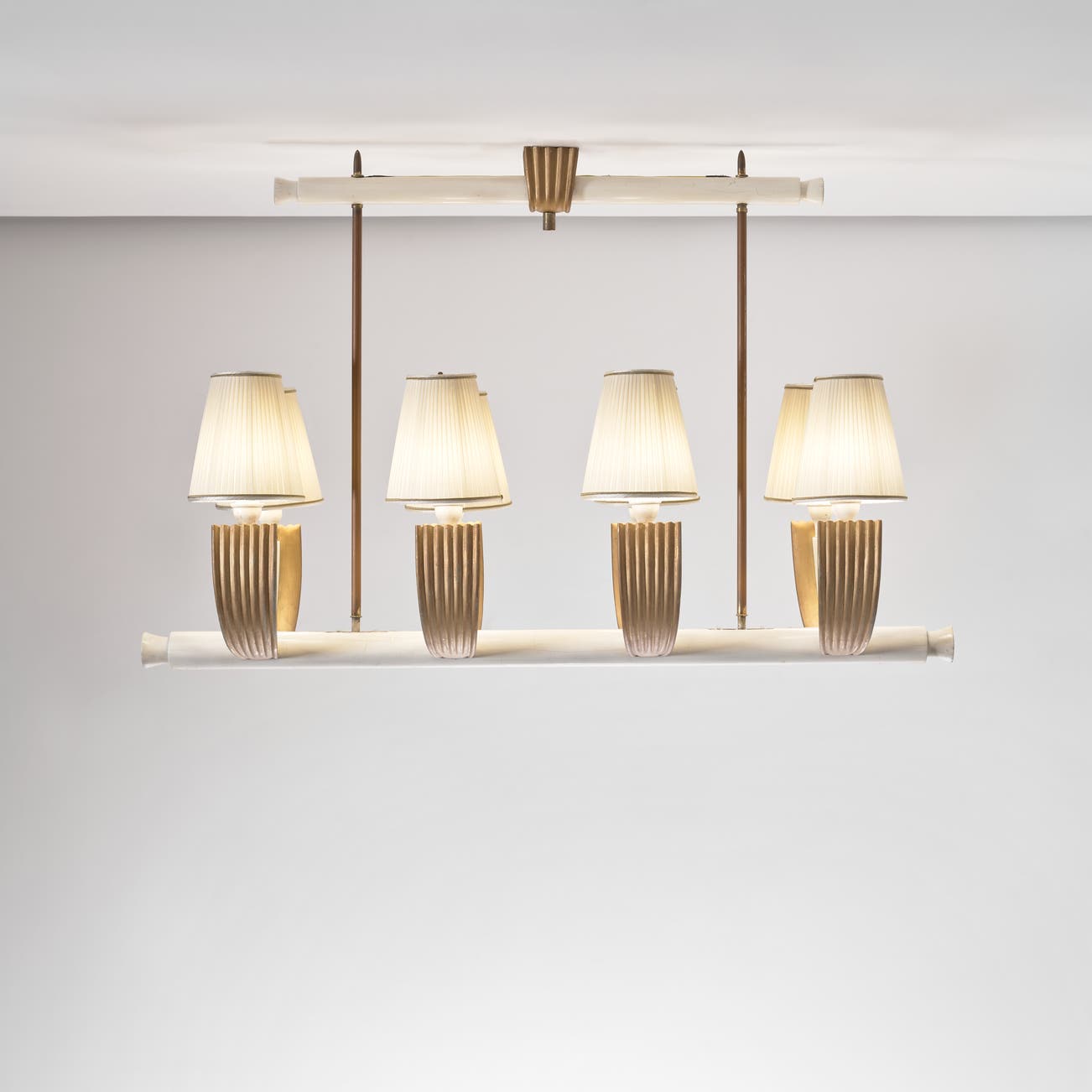 Painted wood, painted brass, brass, fabric shades.