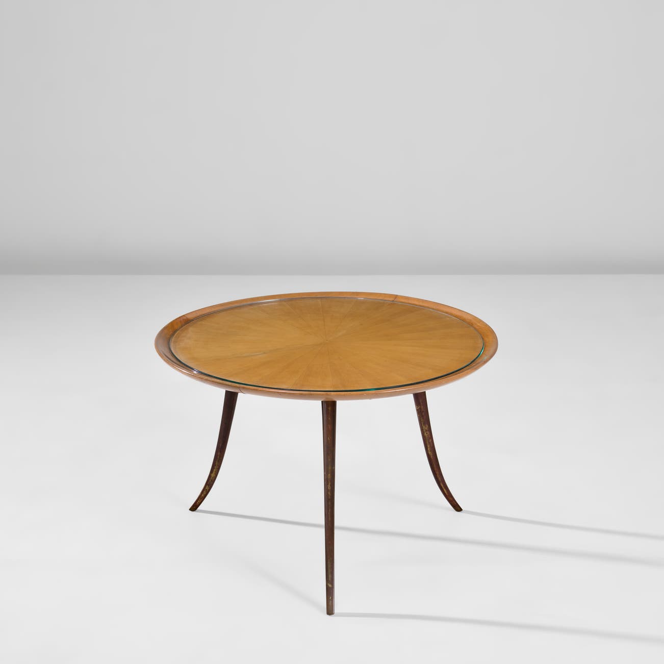 Maple-veneered wood, maple, brass, glass.