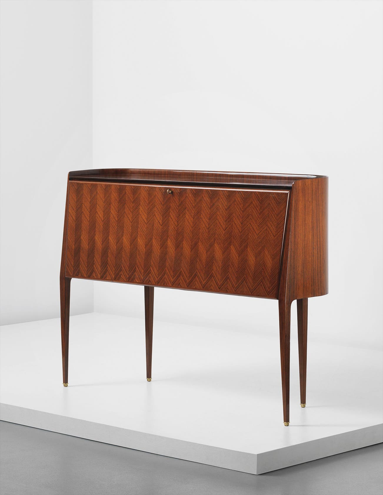 Indian rosewood-veneered wood, Indian rosewood, brass, glass.