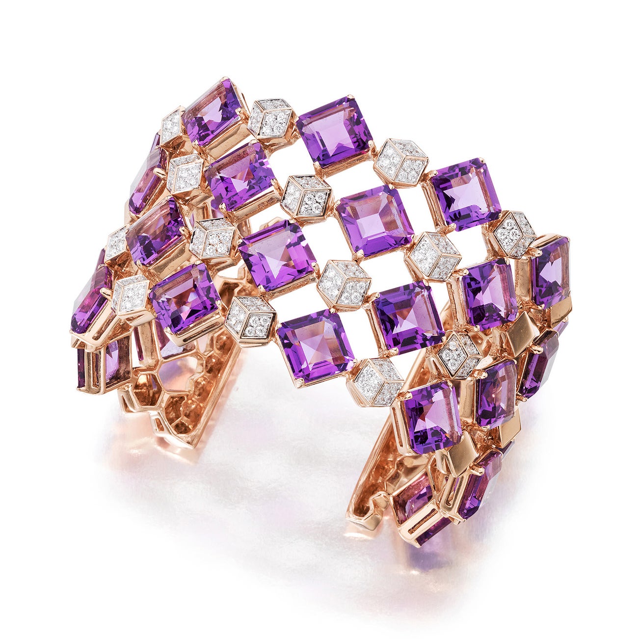 An Amethyst, Diamond, and Rose Gold Cuff