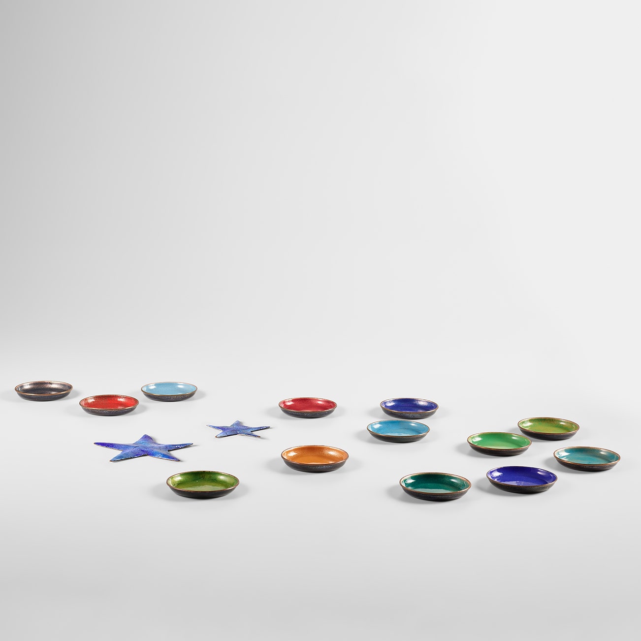 Group of thirteen coasters and two stars
