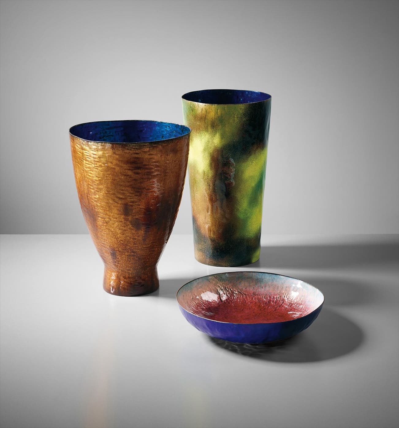 Vase underside signed with De Poli/ 1962 and other vase signed with Paolo De Poli/made in Italy. Dish underside signed with De Poli.