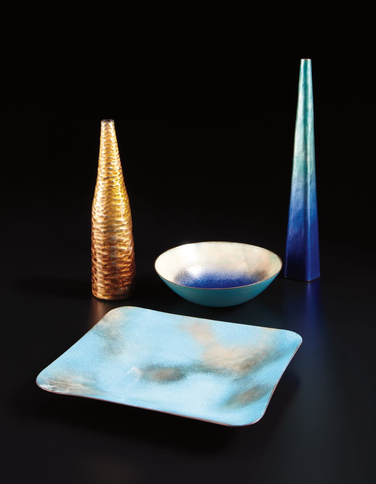 Two vases, dish, and bowl