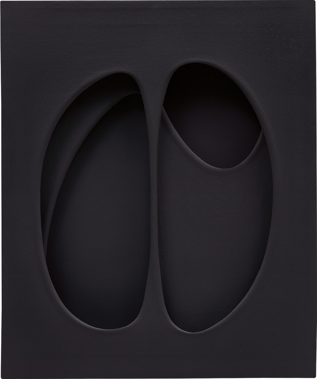Executed in 1963, Per una situazione is exemplary of Paolo Scheggi’s progressive multidisciplinary experimentations with spatiality and tonality. Belonging to the artist’s Per una situazione series, the creation of the present work directly follows a key year in Scheggi’s oeuvre, namely 1962 in which the artist firmly established his monotonal palette and held his pinnacle exhibition at Galleria Il Cancello, Milan, which was accompanied by a catalogue text written by his contemporary, Lucio Fontana, whom the artist had met earlier that year. With its overlapping black planes and graceful elliptical curves, Per una situazione marks a turning point in the artist’s body of work, the title aptly translating to ‘For a situation’. Inviting the viewer to explore the complex shadow play of the shaped layers, Scheggi’s deepening and extending of the two-dimensional picture plane suspends the viewer in a sublime moment of meditative reflection.