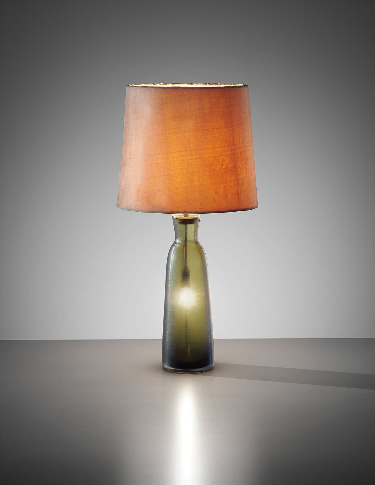 Inciso glass, brass, fabric shade.