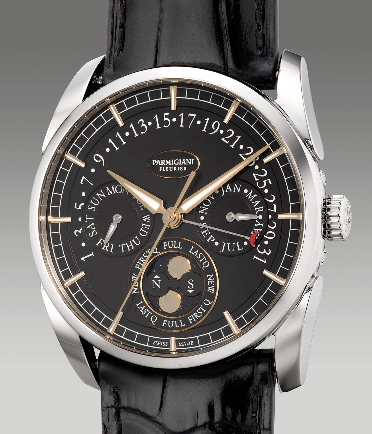 Accompanied Parmigiani guarantee dated October 2018 stamped Hausmann Condotti s.r.l., Roma, instruction manual, cloth, leather folio, leather card holder, outer packaging and travel case.