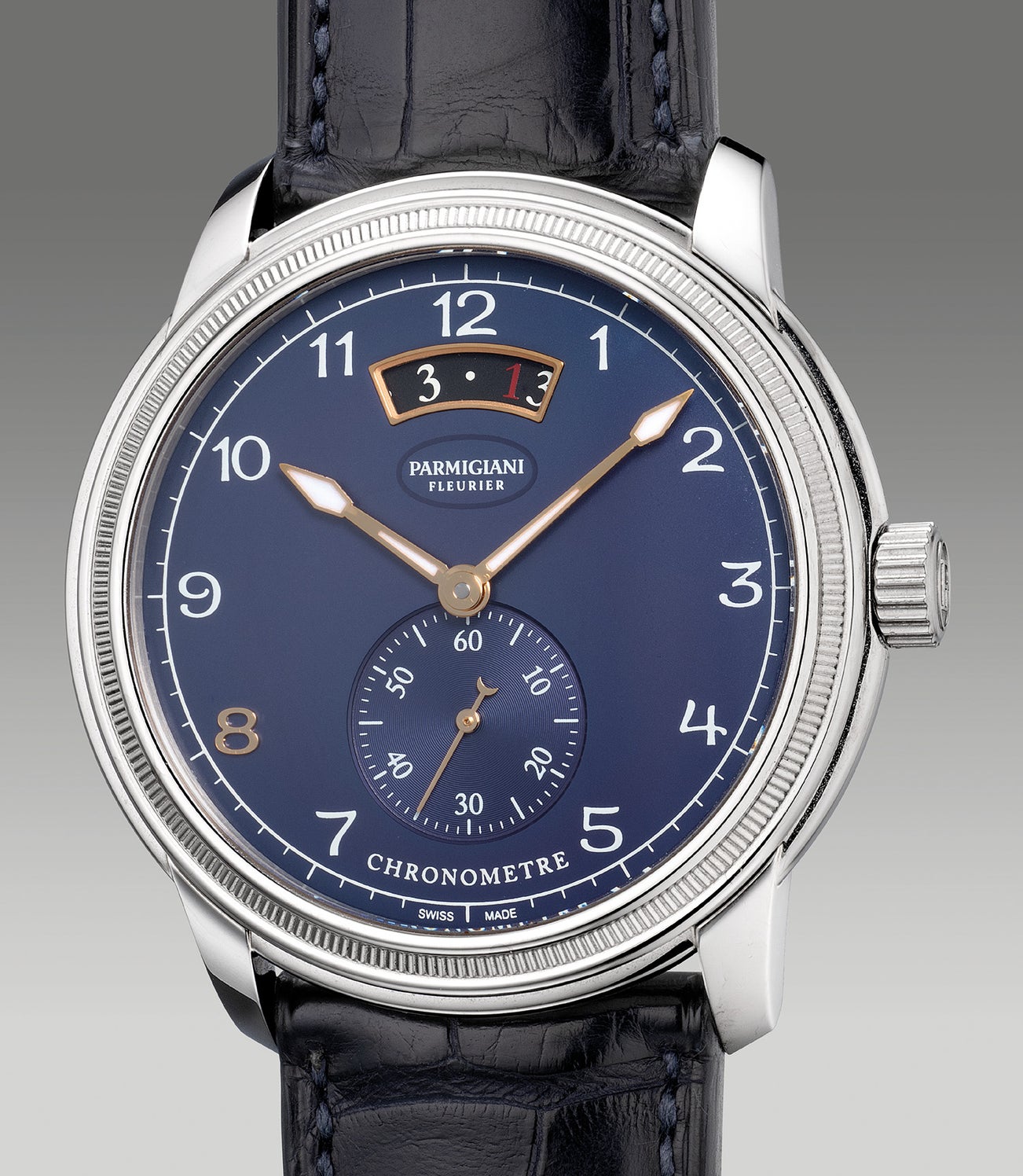 Accompanied by Parmigiani Fleurier chronometer guarantee stamped Oriental Watch Co. LTD Hong Kong, cloth, instruction manual, leather passport holder, leather card holder, travel case, outer bag, fitted presentation box and outer packaging.