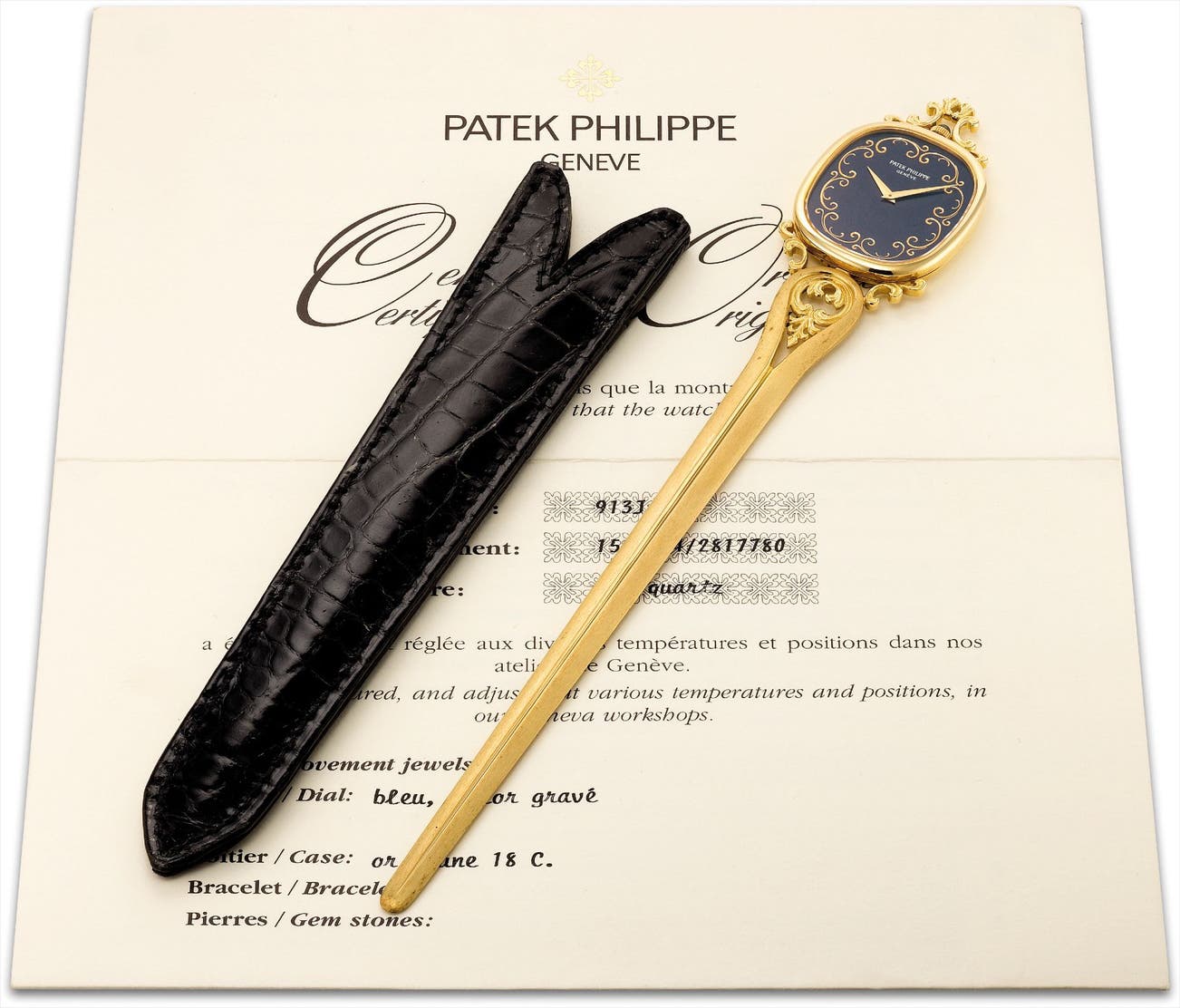 A very fine and extremely rare yellow gold paper knife with watch, original certificate and travel case