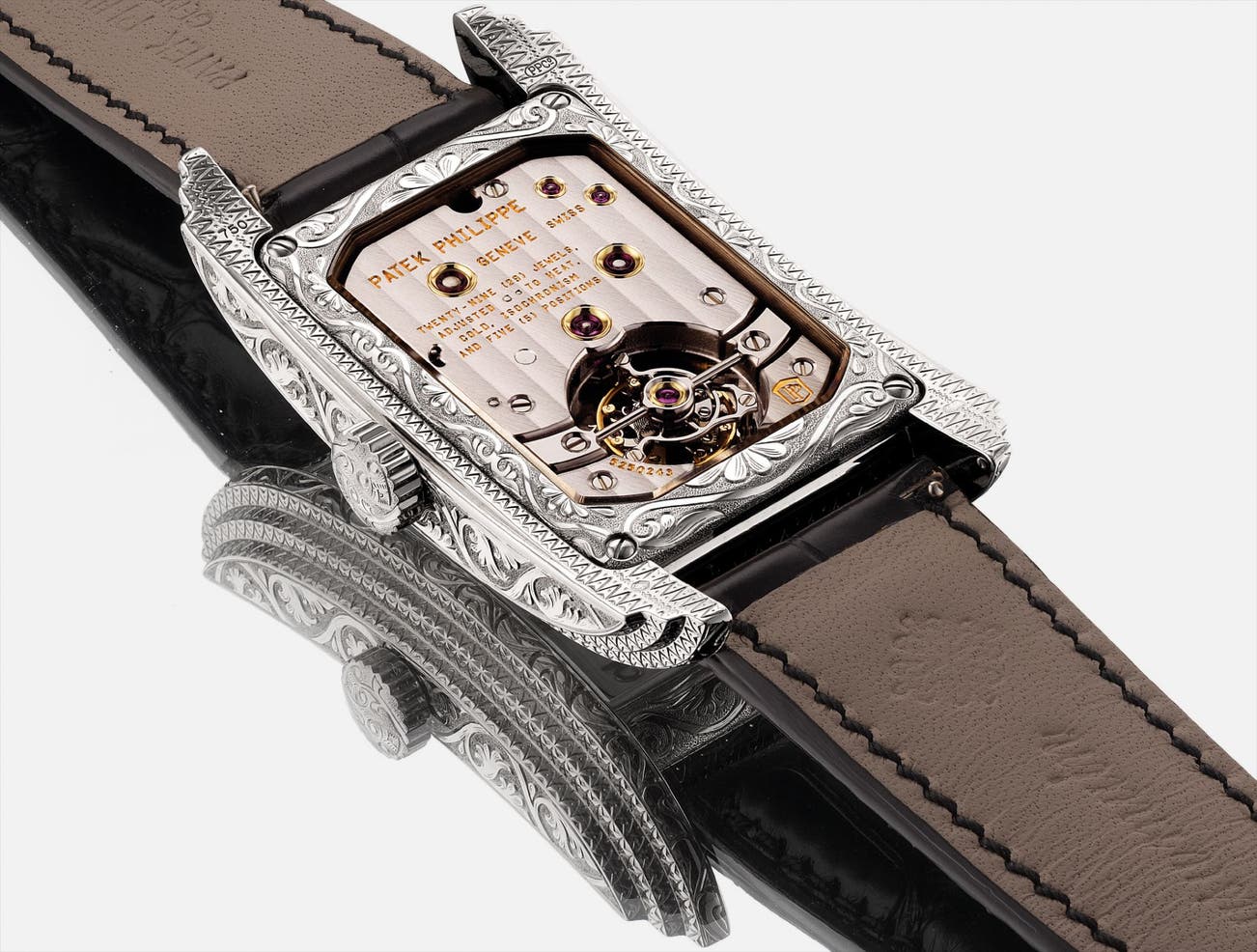 In later years, Patek introduced pink gold, yellow gold and white gold examples to compliment the 10 days Tourbillon's production. The present watch is part of Patek Philippe's rare handcrafts series that specializes in such case designs and enamel work. Due to the very large stepped case, the engraving is magnificent and truly transforms this watch into something unique and very captivating.