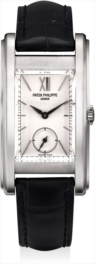 A fine and very rare platinum limited edition rectangular wristwatch, made to commemorate the opening of Patek Philippe's salon in Geneva in 2006